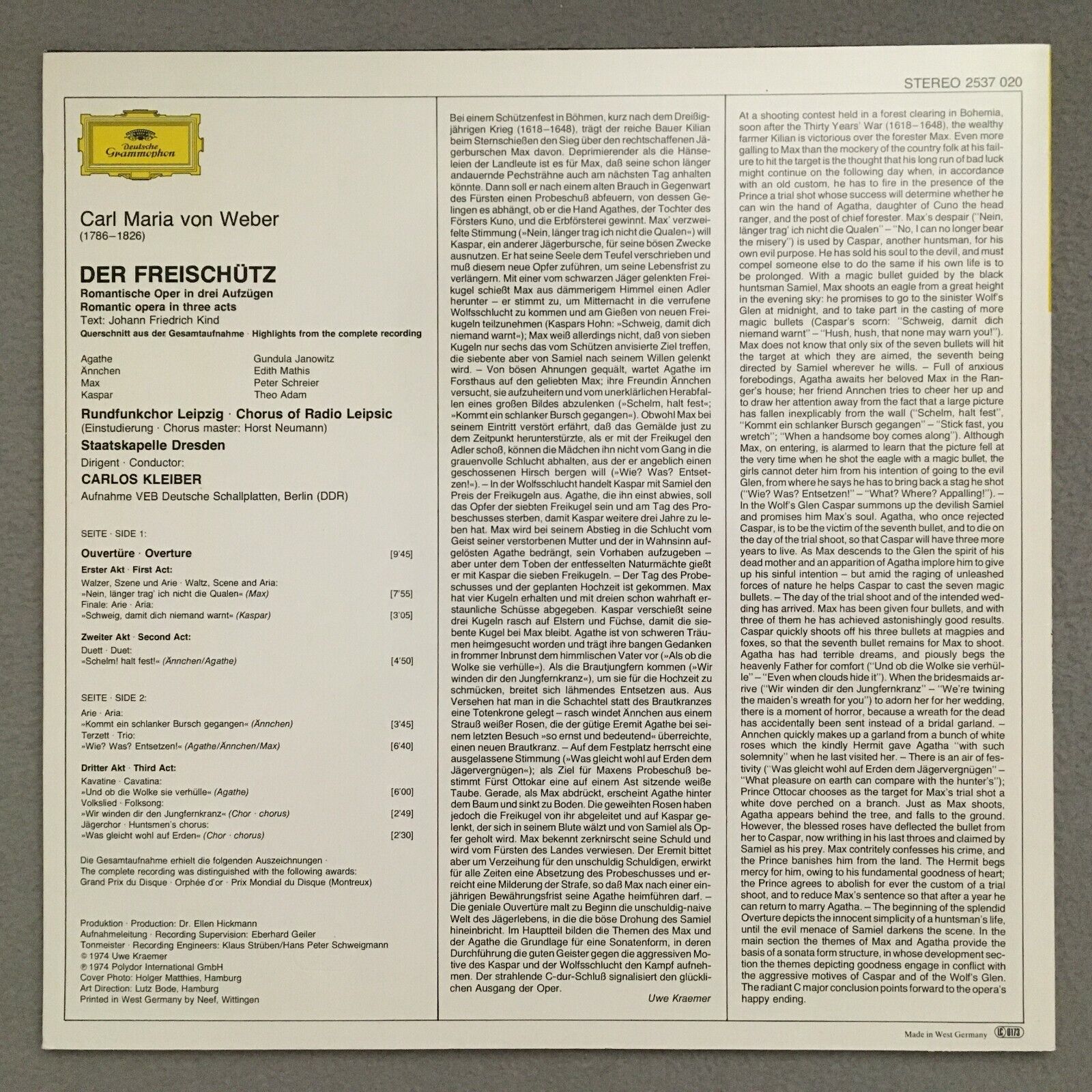 S073 Weber Freischütz Janowitz Mathis Schreier Adam Kleiber DGG 2537 020 Stereo