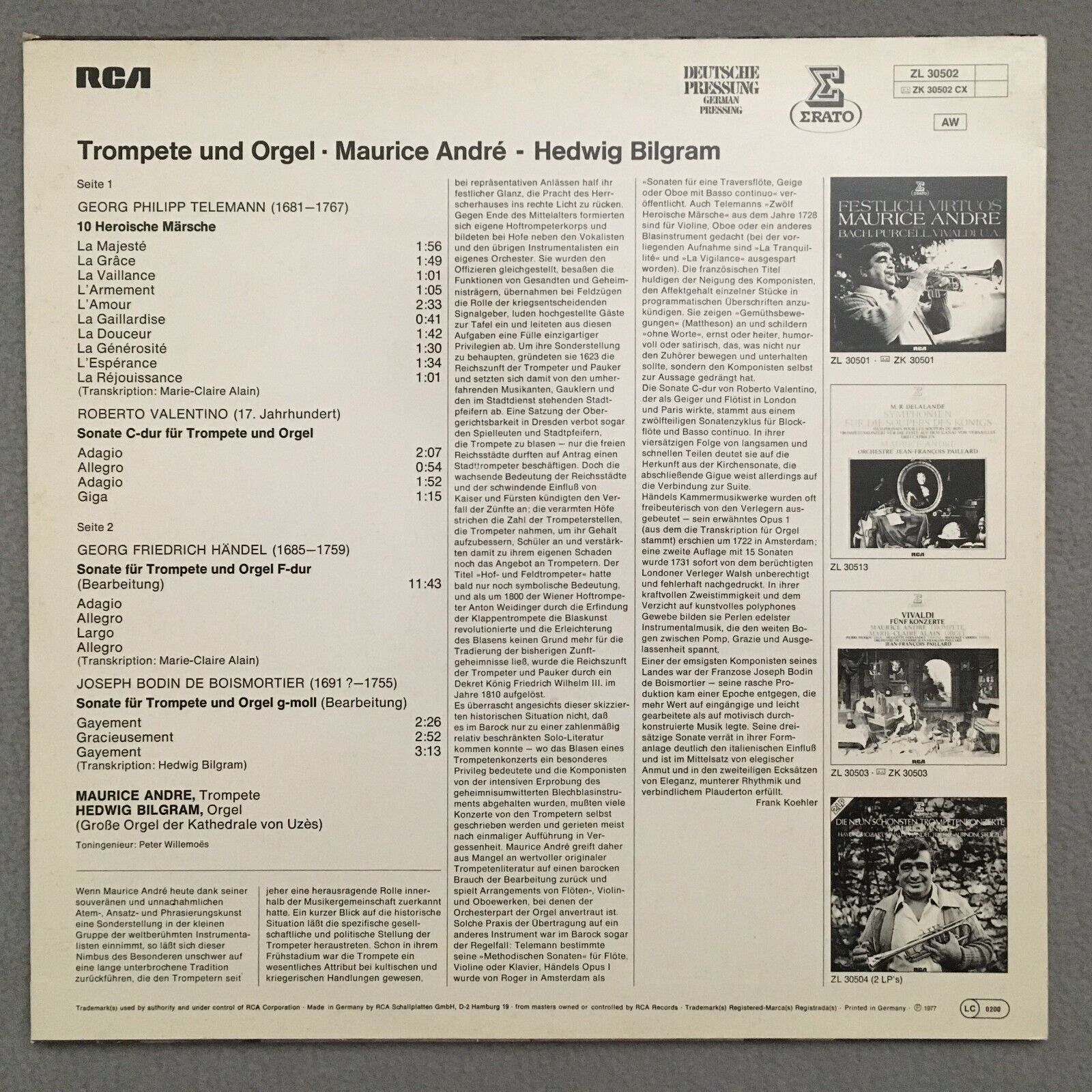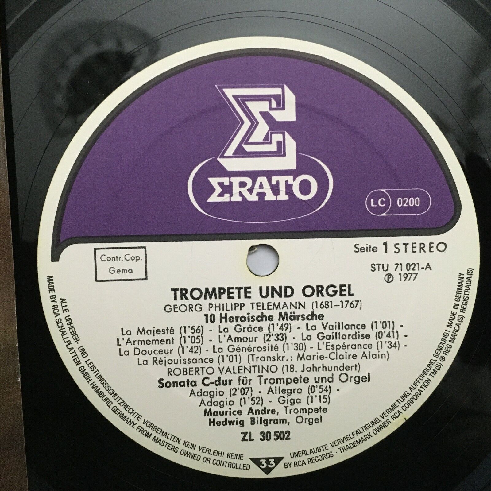 S067 Trumpet & Organ Andre Bilgram Telemann Handel Erato ZL 30502 Stereo