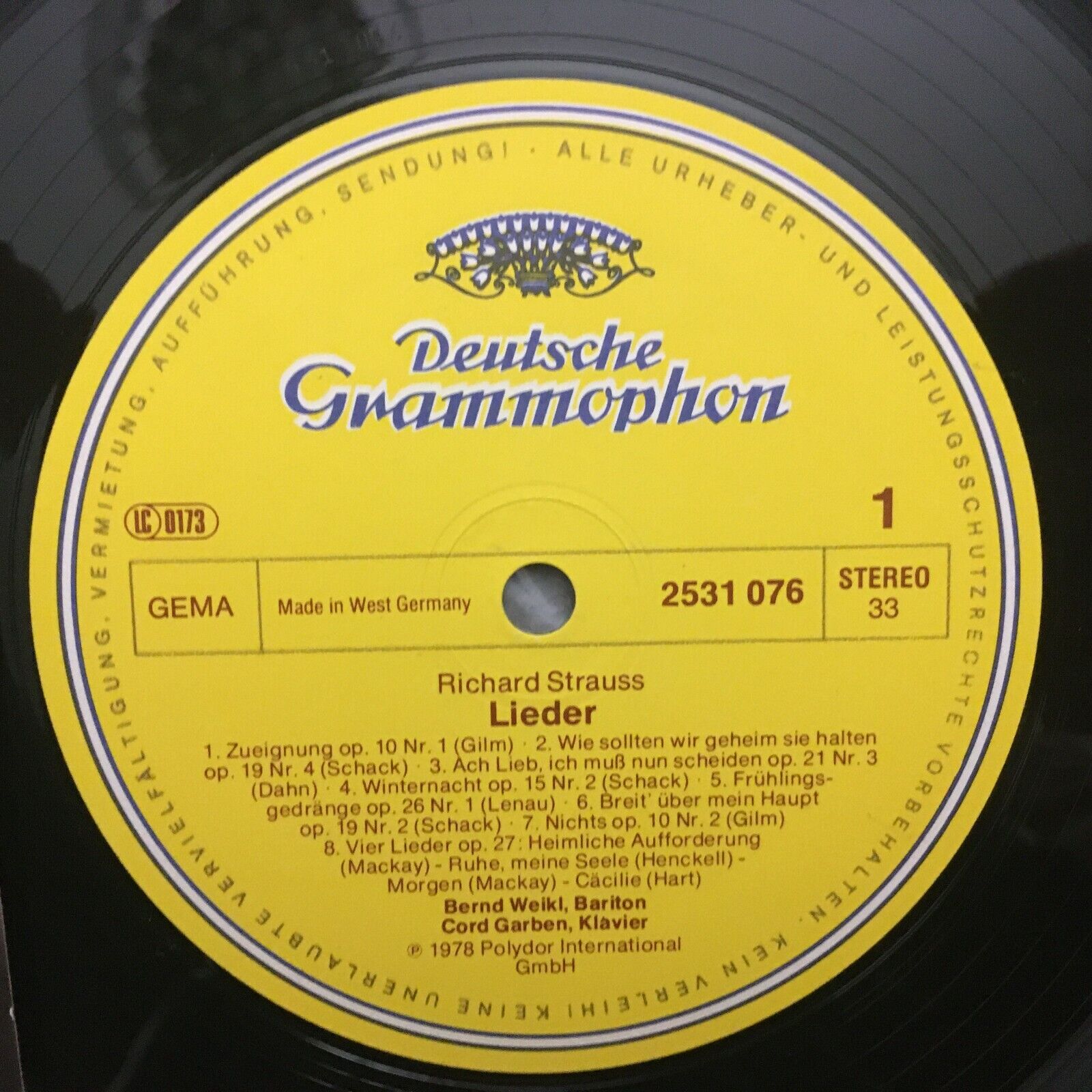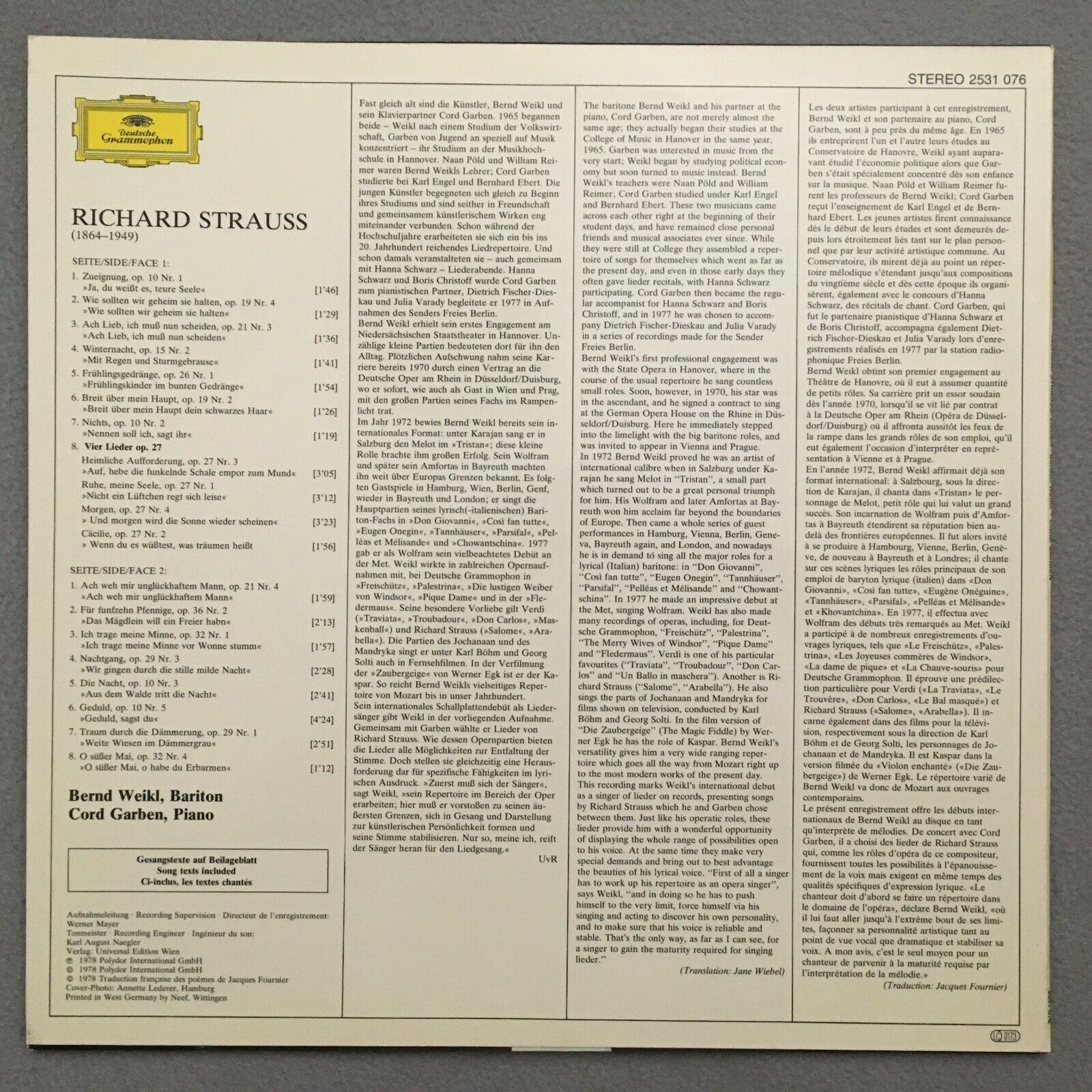S061 R. Strauss Songs Weikl Garben Piano DGG 2531 076 Stereo