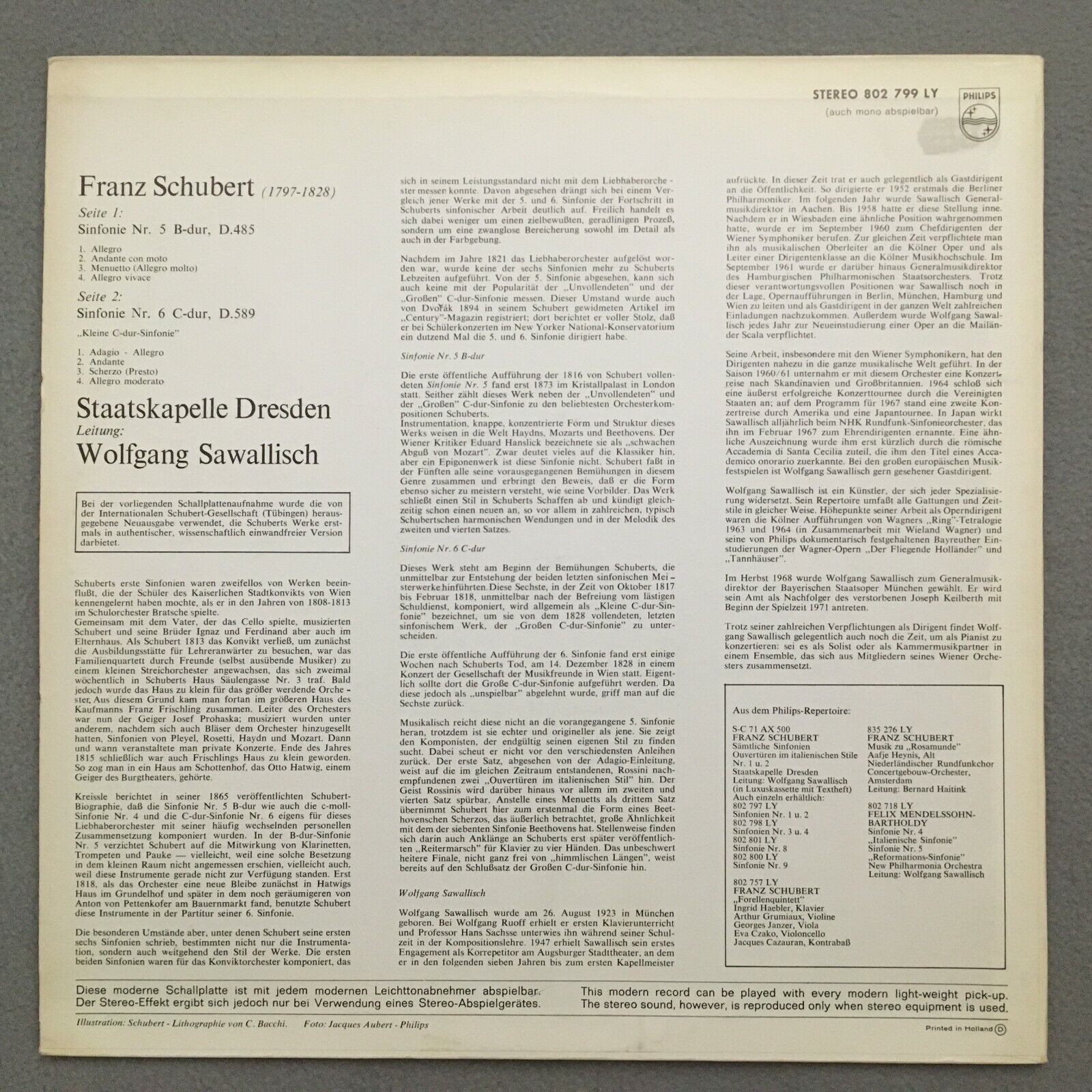 S059 Schubert Symphonies No.5 & No.6 Sawallisch Philips 802 799 LY Stereo