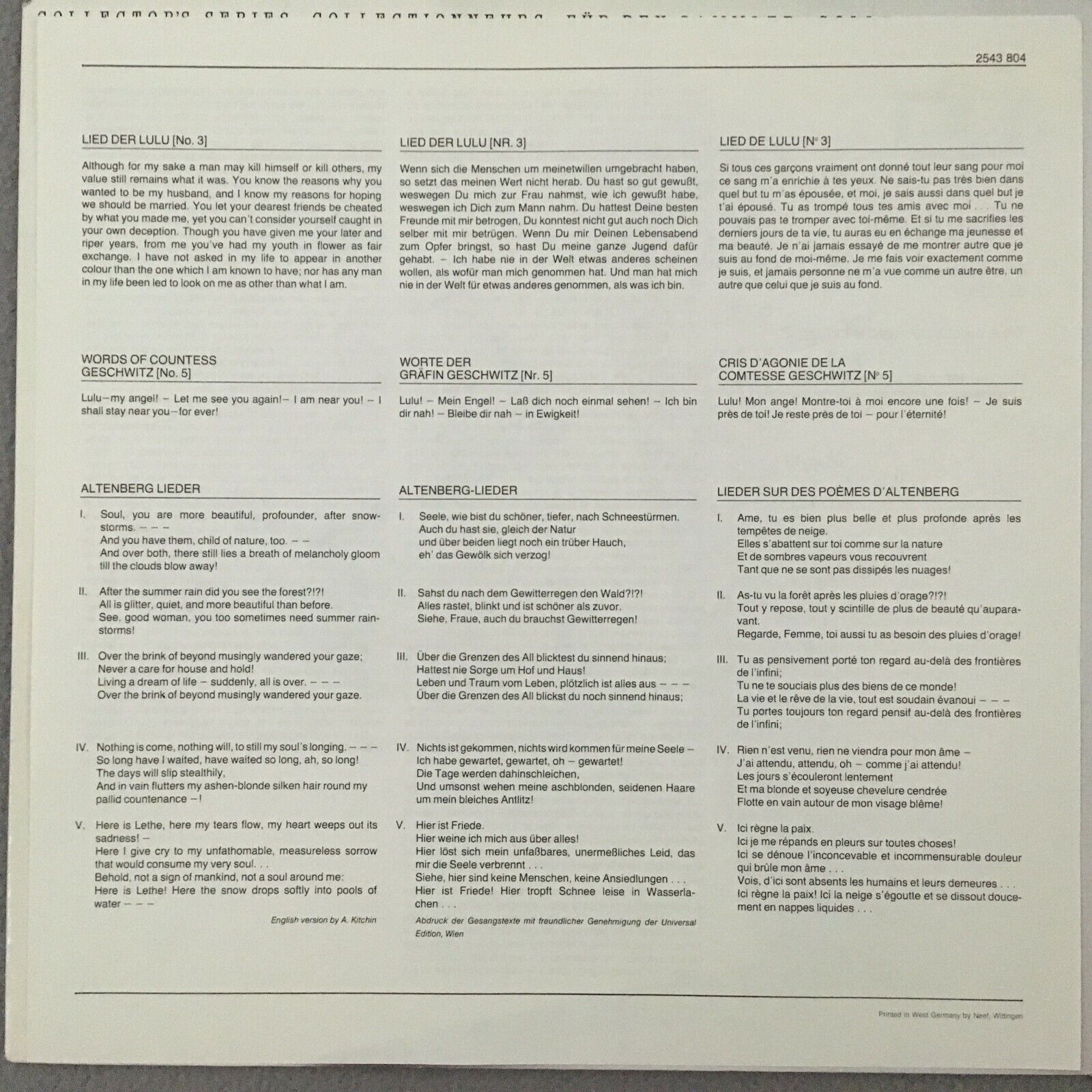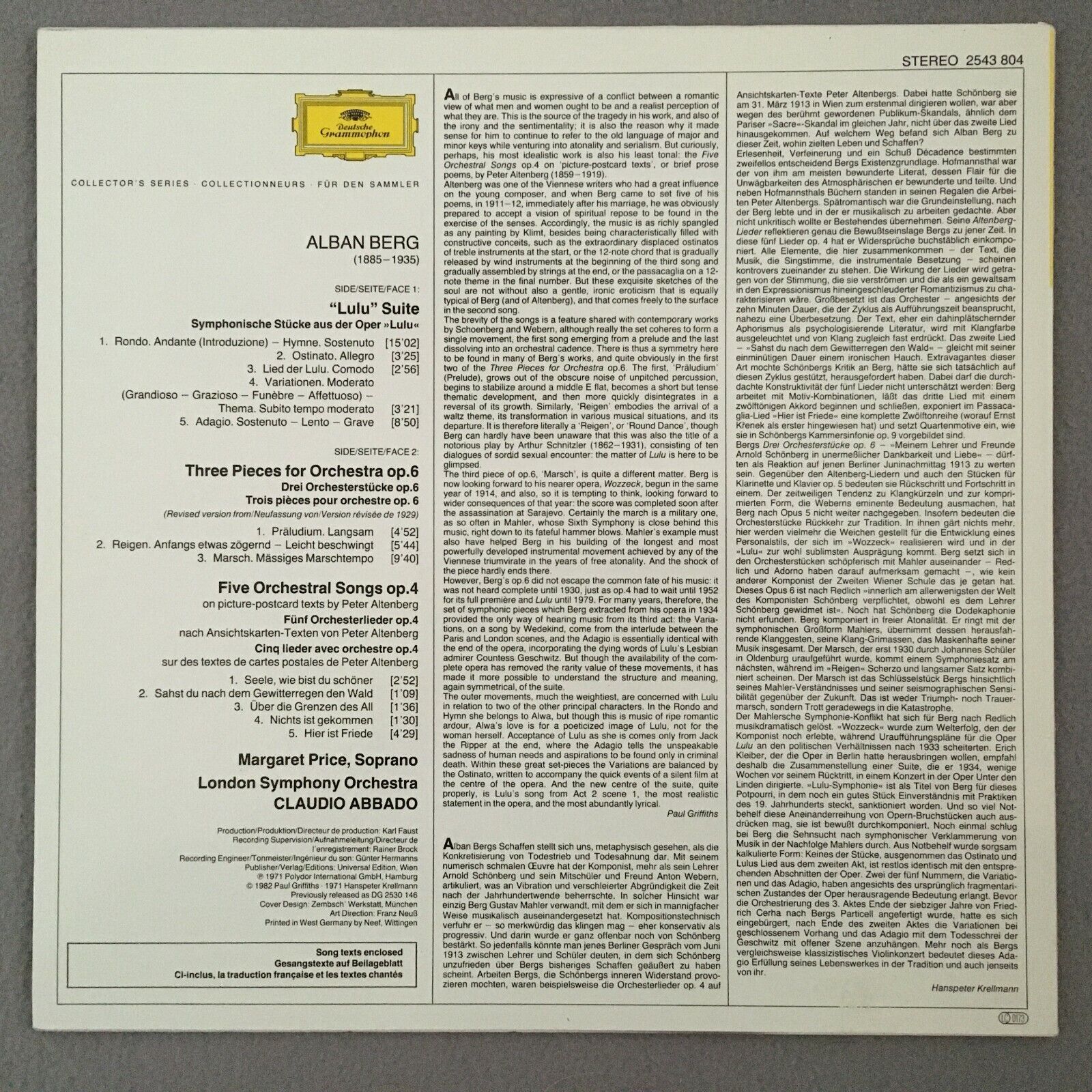 S876 Berg Lulu Suite Albenberg Songs Price Abbado LSO DGG 2543 804 Stereo