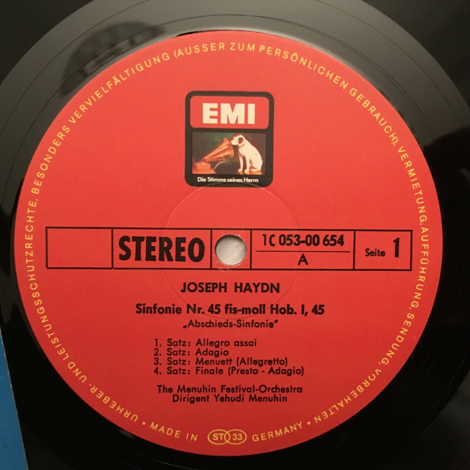 S875 Haydn Symphonies No.45 & No.49 Menuhin EMI 1 C 053-00 654 Stereo
