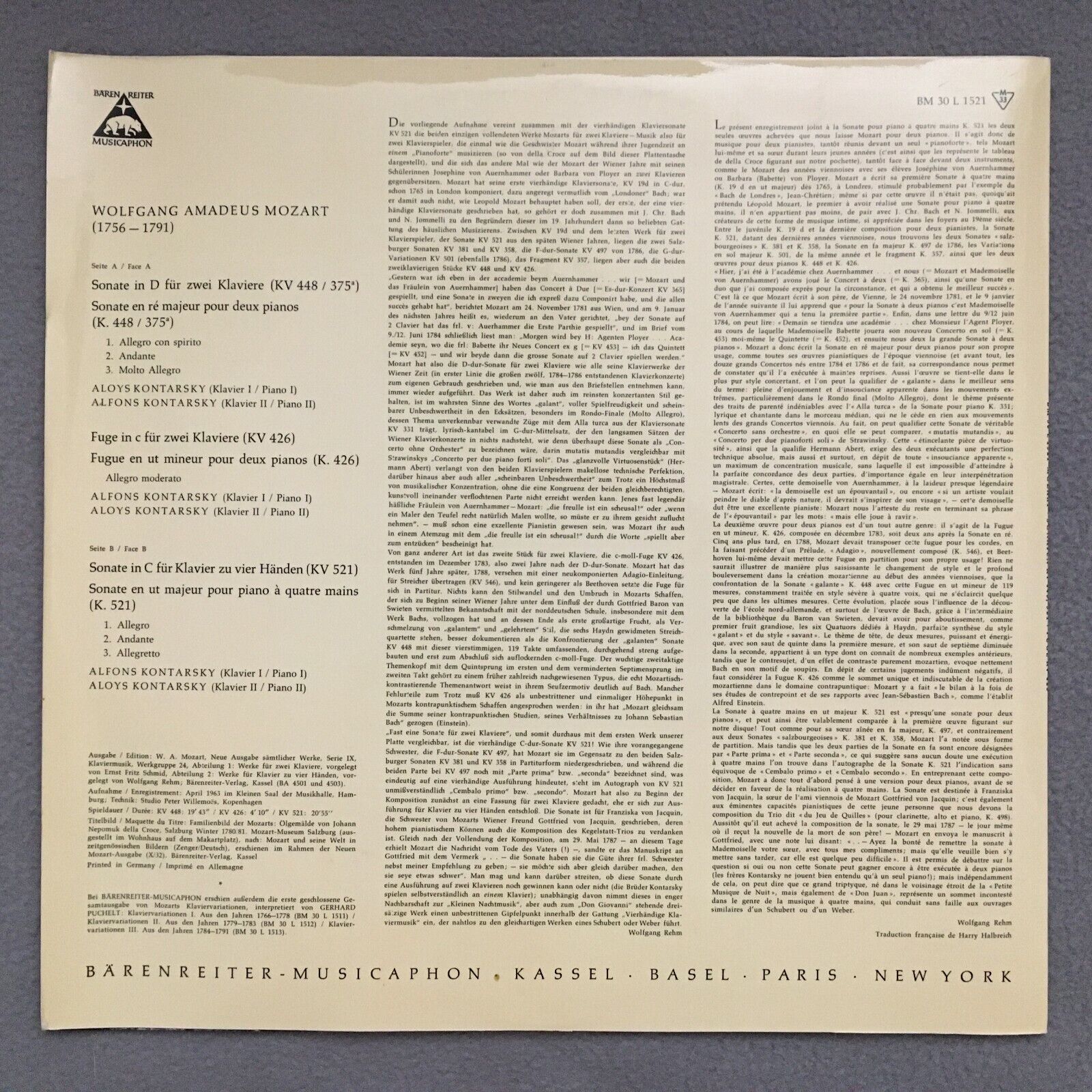 S868 Mozart Sonatas Fugue A. & A. Kontarsky Piano Musicaphon BM 30 L 1521
