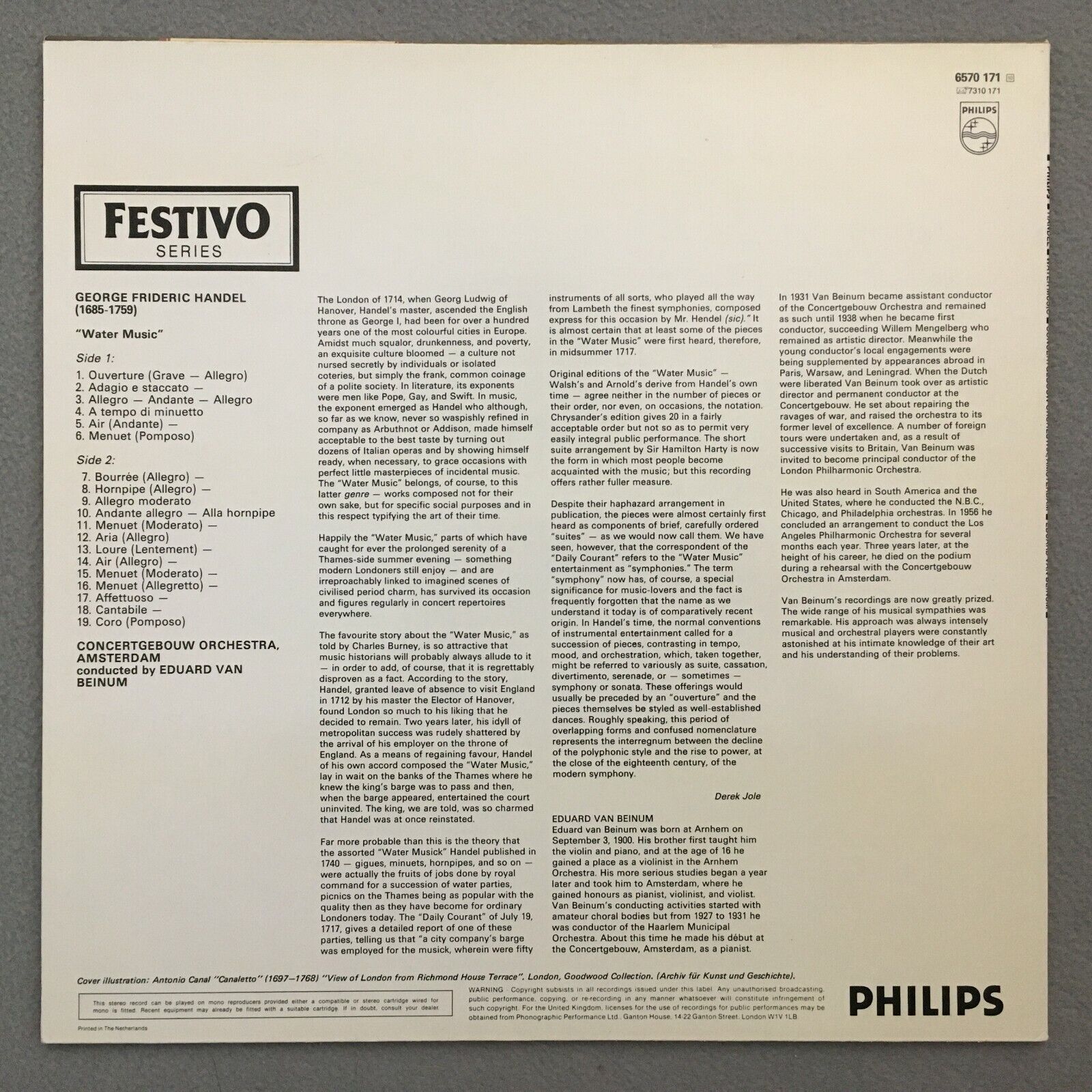 S828 Handel Water Music Van Beinum Philips 6570 171 Stereo