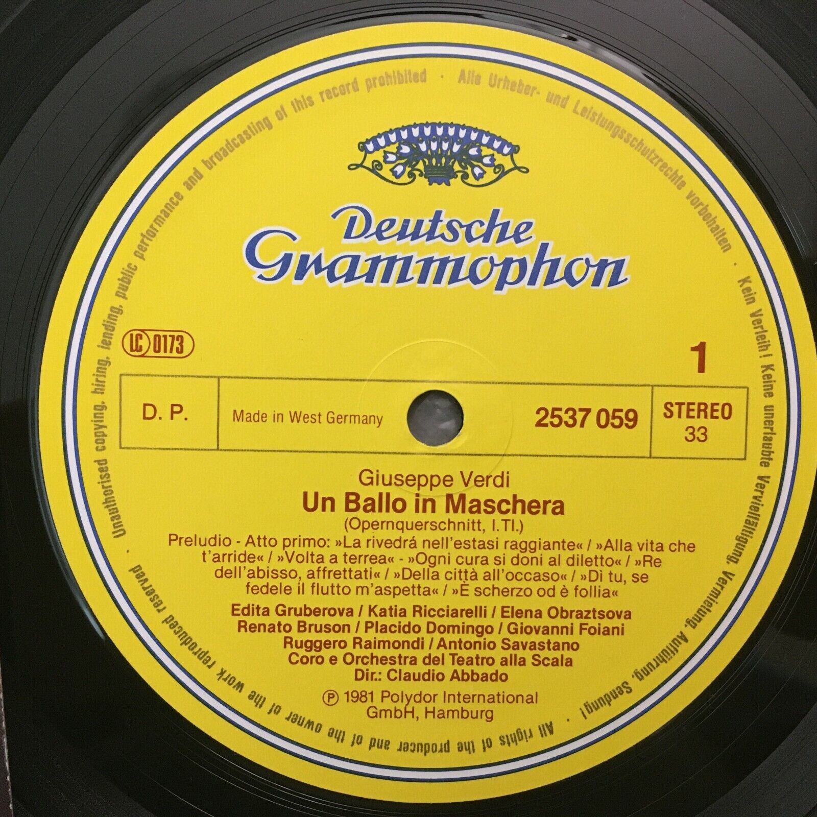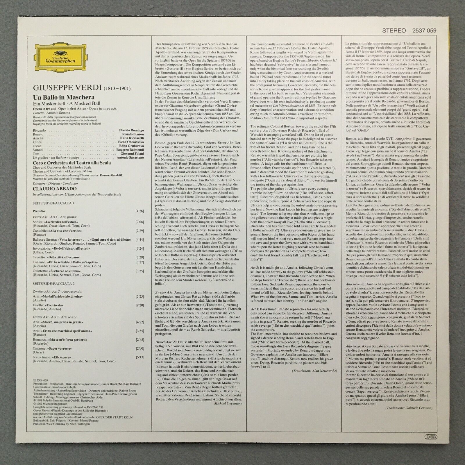 S817 Verdi Un Ballo in Maschera Domingo Ricciarelli Abbado DGG 2537 059 Stereo