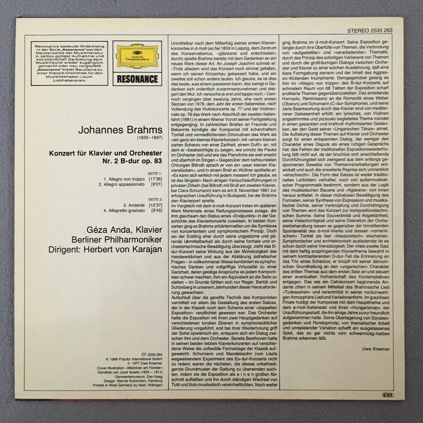 S660 Brahms Piano Concerto No.2 Anda Karajan BPO DGG 2535 263 Stereo