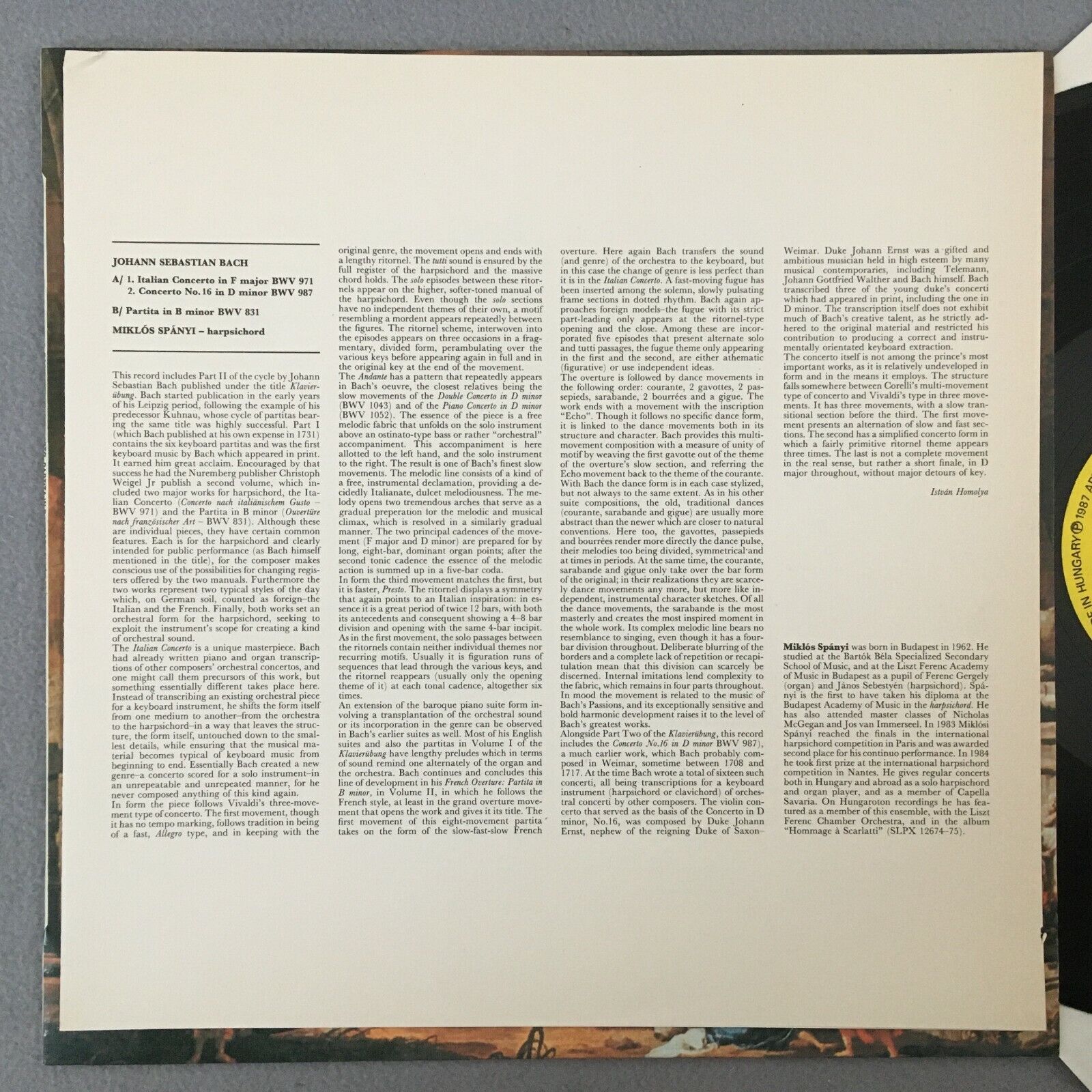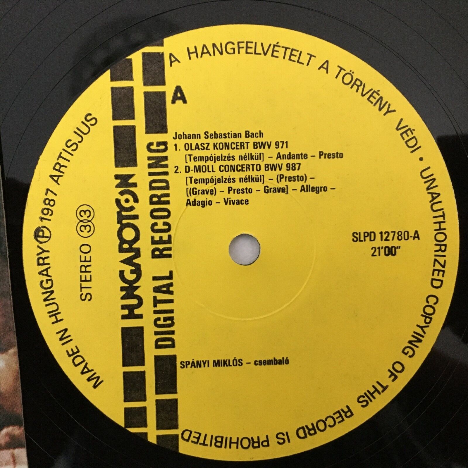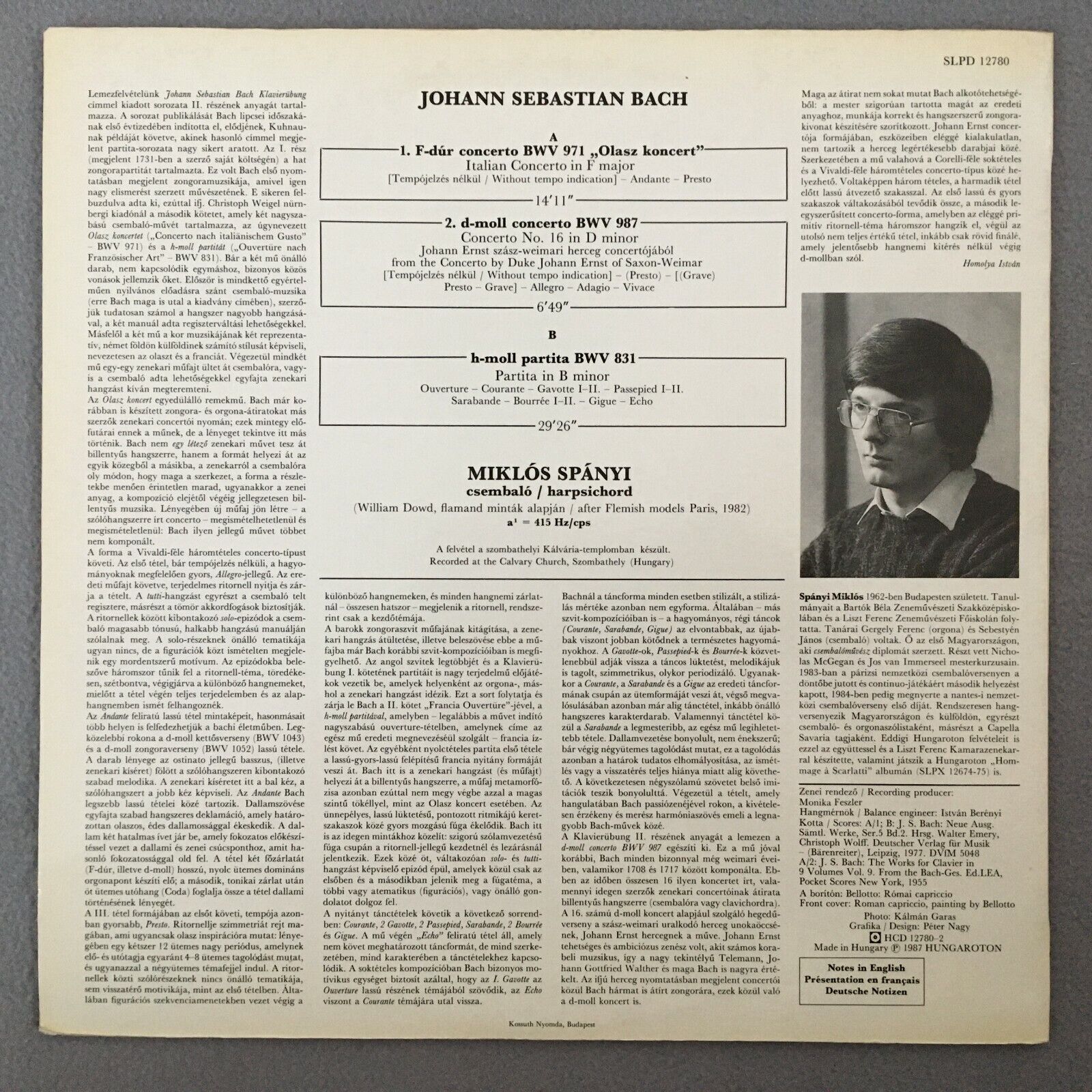 S659 Bach Italian Concerto Spanyi Cembalo Hungaroton SLPD 12790 Digital Stereo