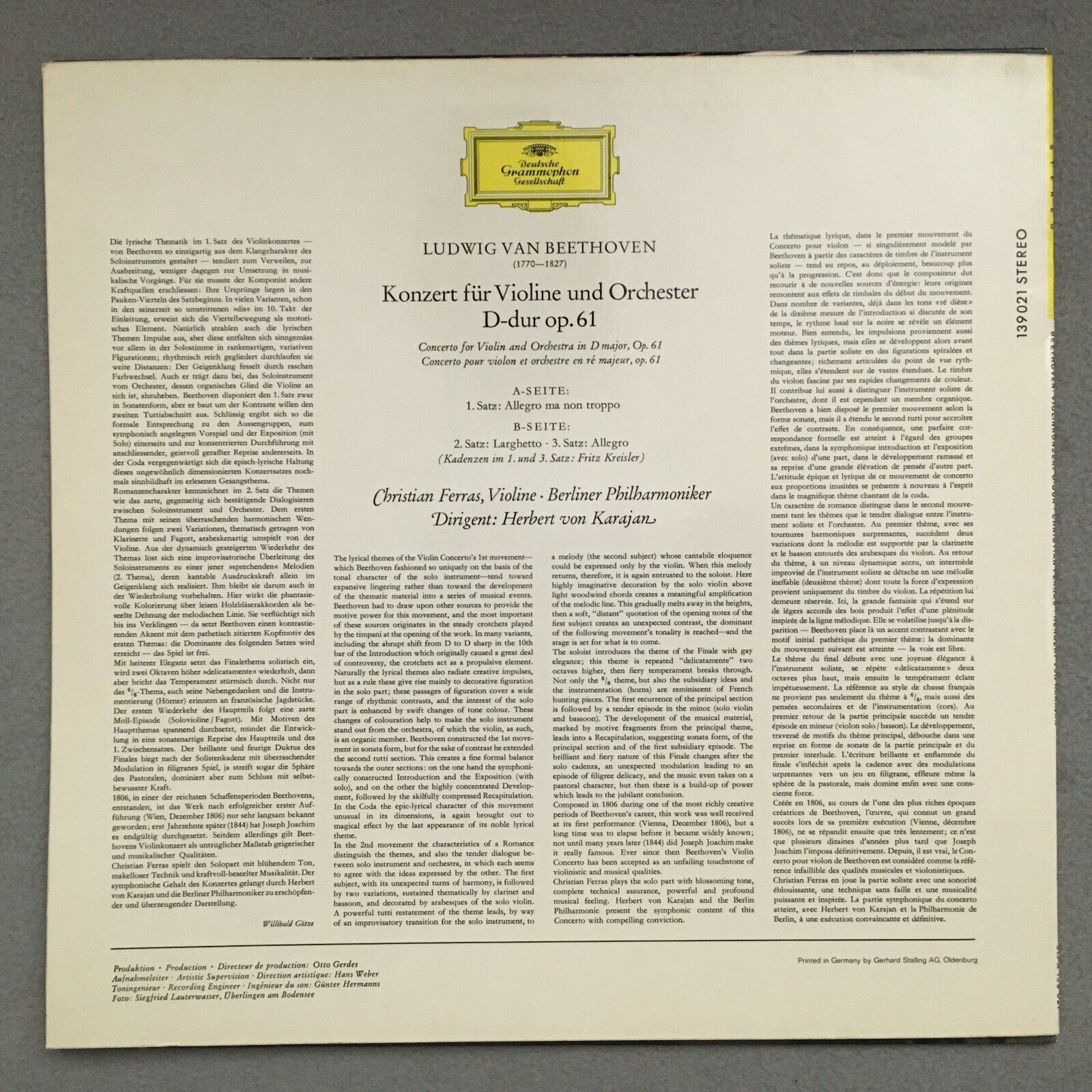 S647 Beethoven Violin Concerto D major Op.61 Ferras Karajan DGG 139 021 Stereo