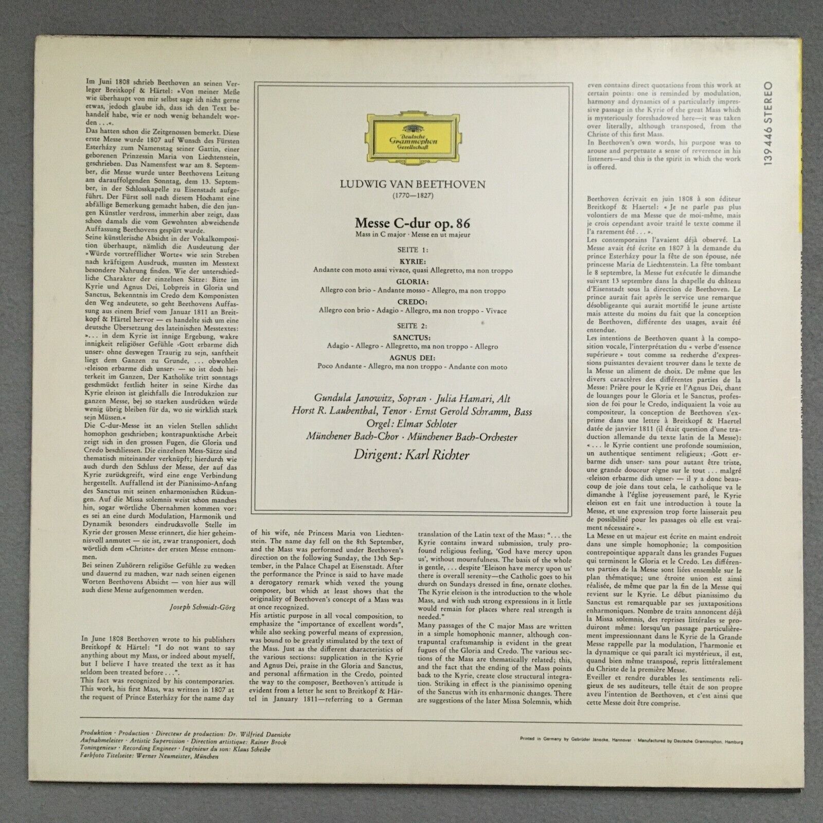 S642 Beethoven Mass Janowitz Hamari Laubenthal Richter DGG 139 446 SLPM Stereo