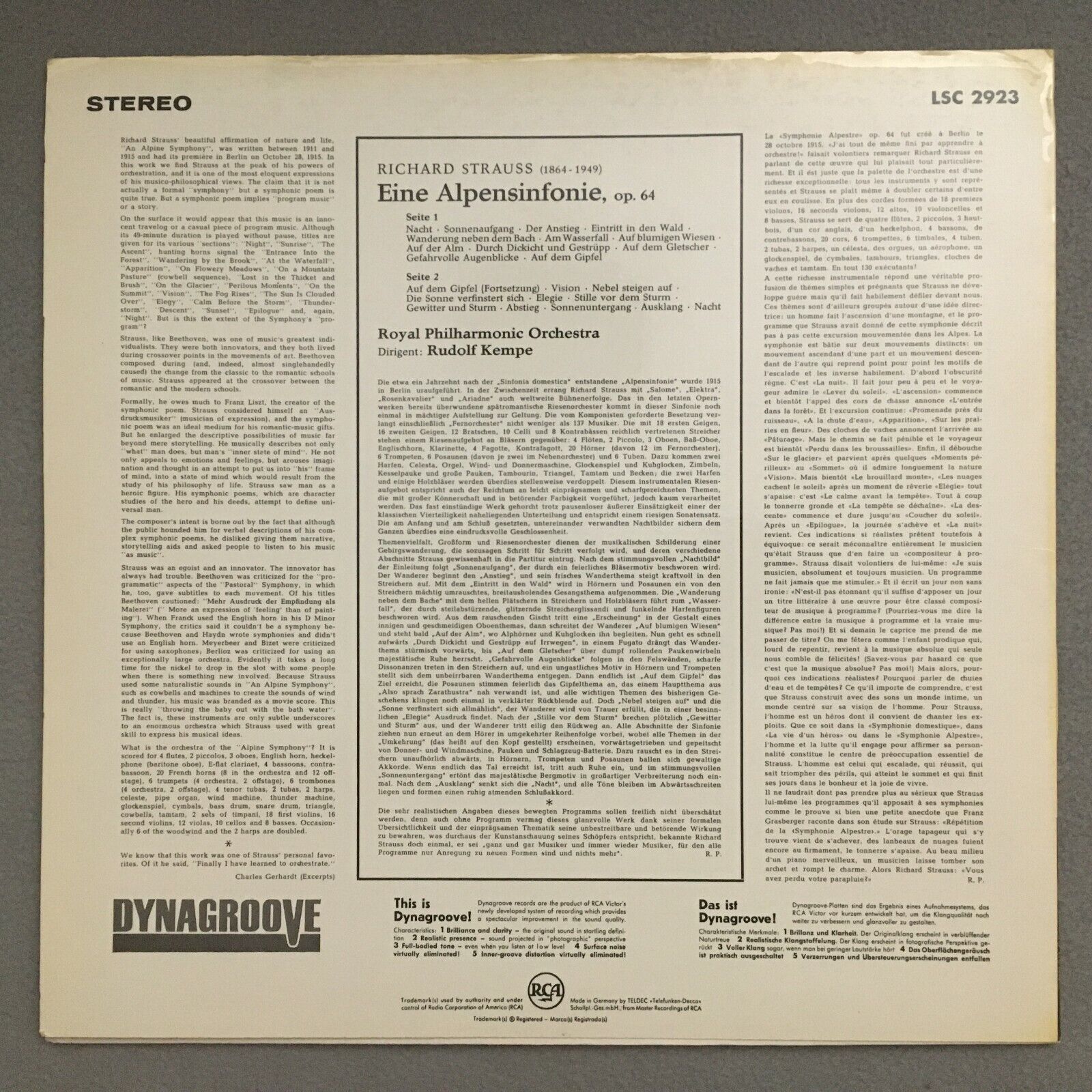 S624 R. Strauss Alpine Symphony Op.64 Kempe RCA LSC-2923 Stereo