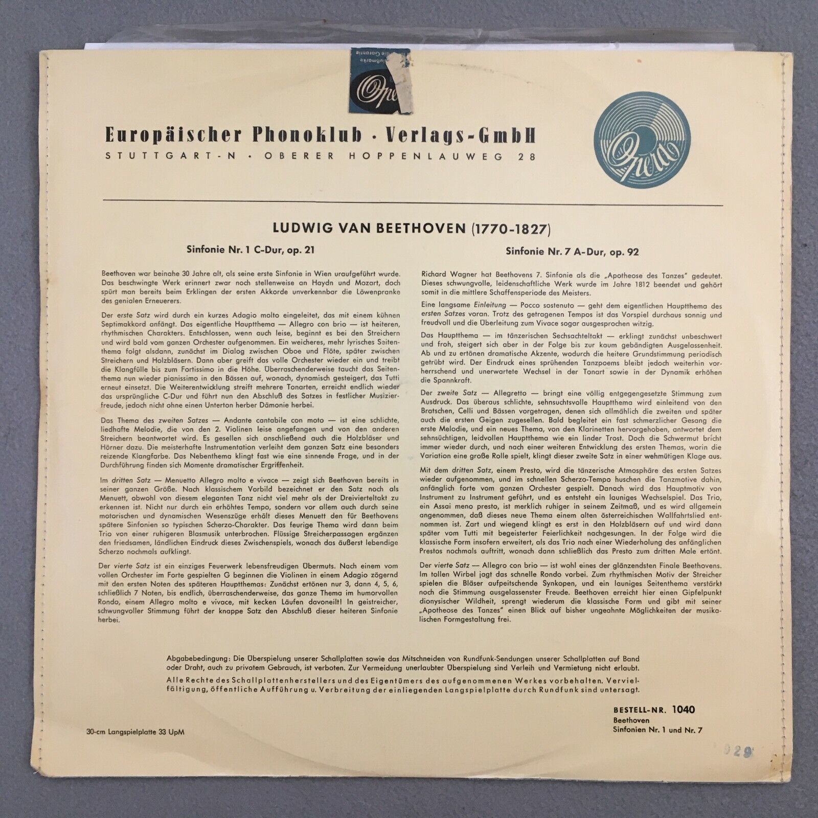 S552 Beethoven Symphonies No.1 & No.7 Duron Perlea Opera 1040