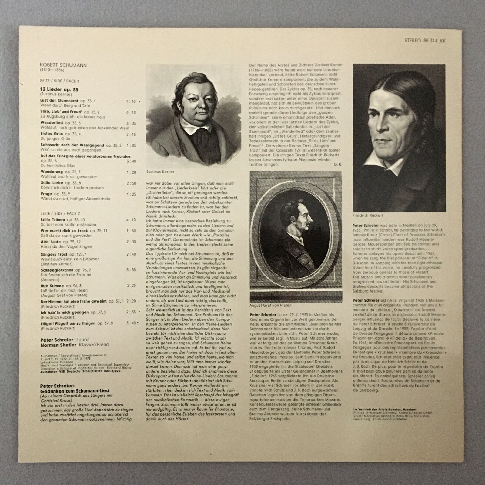 S540 Schumann Songs Kerner Rückert Schreier Shetler Eurodisc 88 314 KK Stereo
