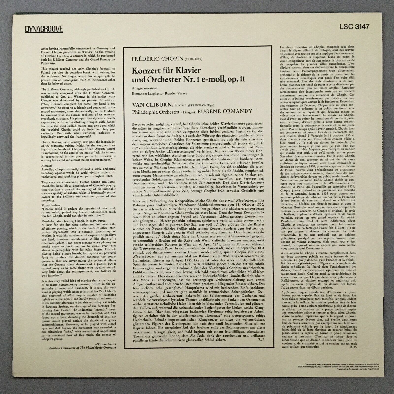 S528 Chopin Piano Concerto Cliburn Ormandy RCA LSC 3147 Stereo