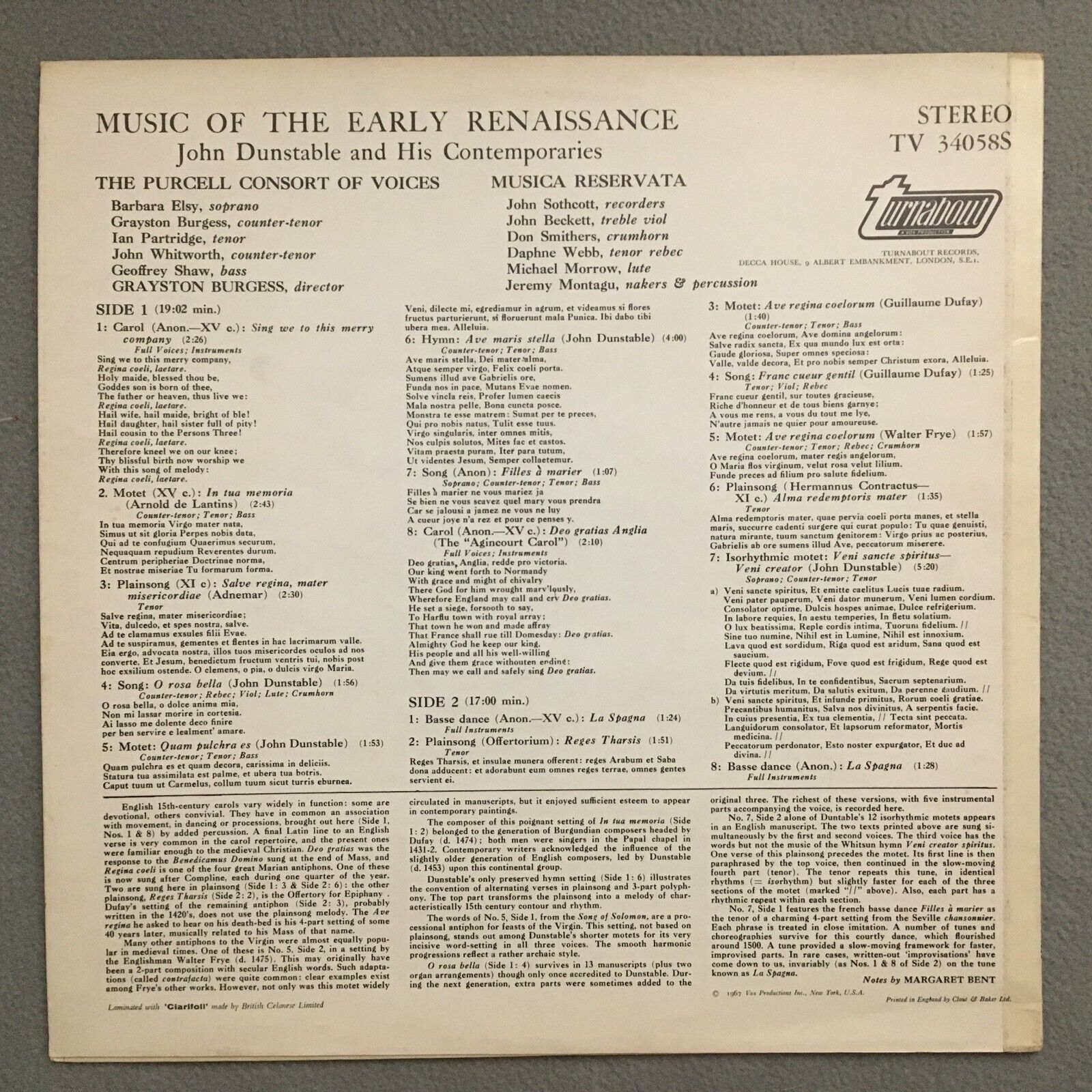 S511 Music Early Renaissance Dunstable Purcell Consort Turnabout TV 340 58S St