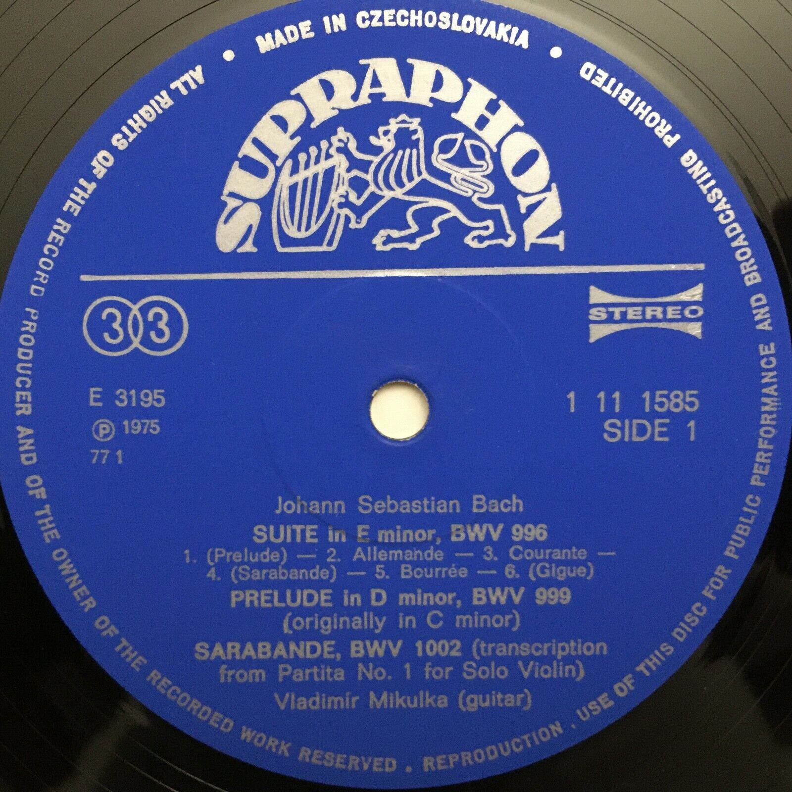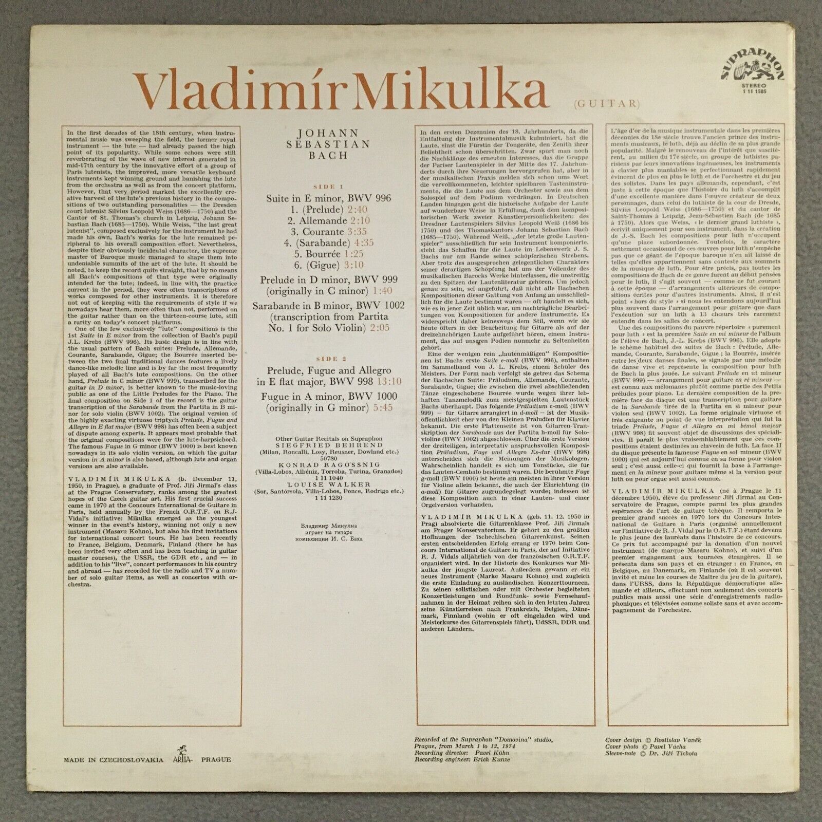 S497 Bach Suite Preludes Fugue Mikulka Guitar Supraphon 1 11 1585 Stereo