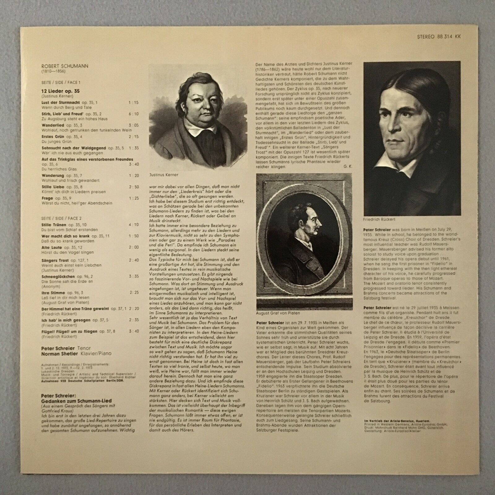 S503 Schumann Kerner Rückert Songs Schreier Shetler Eurodisc 88 314 KK Stereo