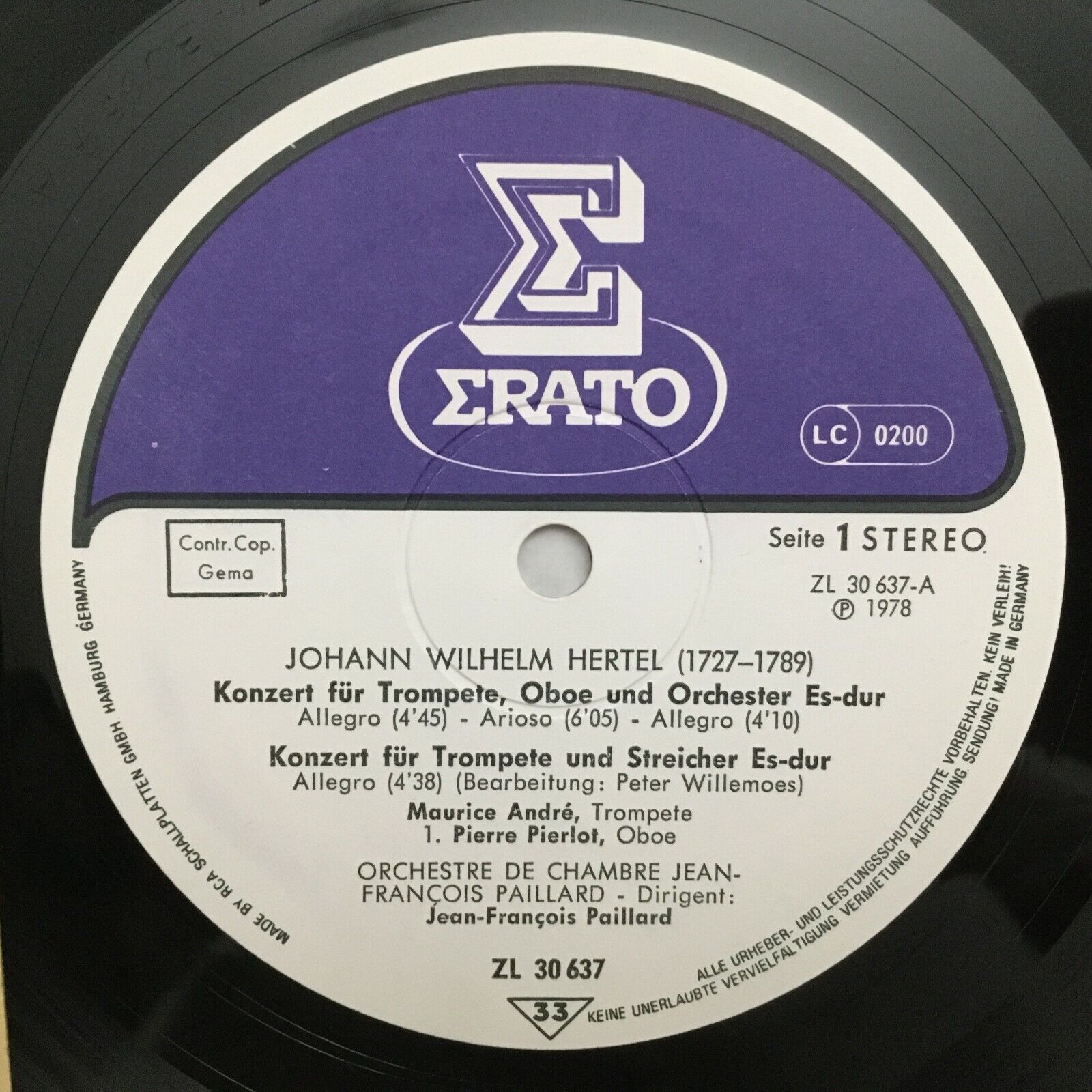S498 Hertel Concertos Andre Trumpet Paillard Erato ZL 30637 Stereo
