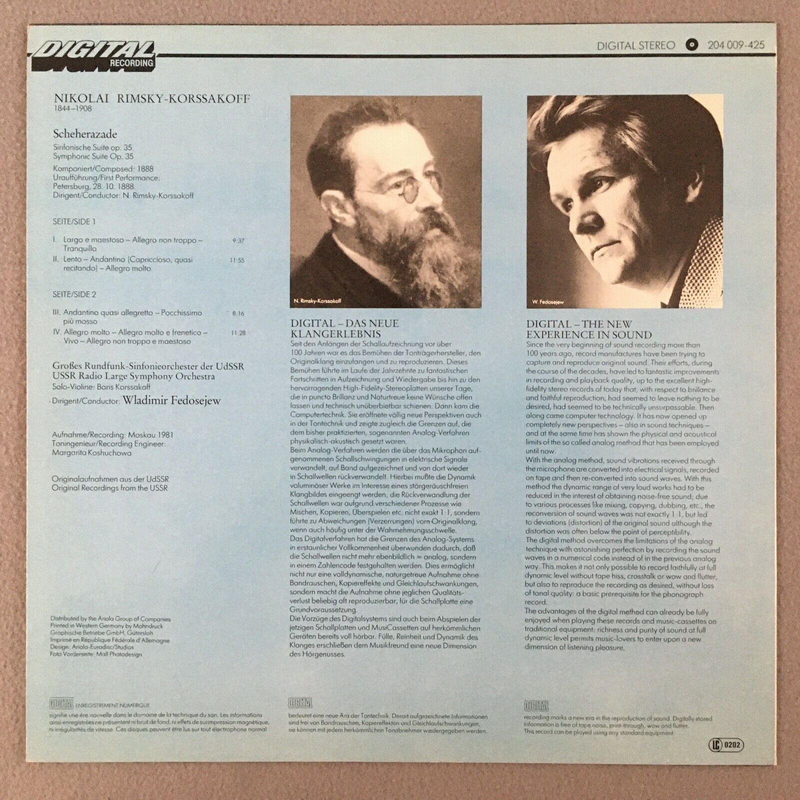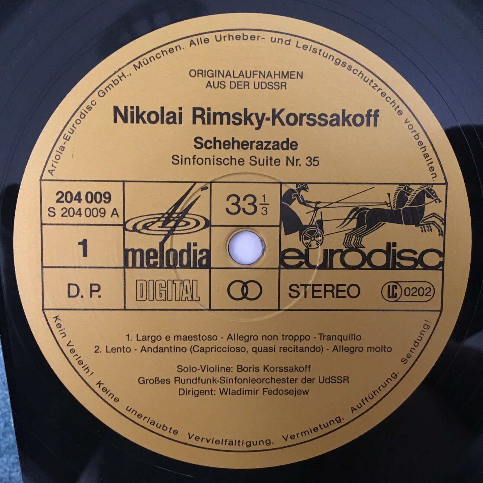 S487 Rimsky-Korssakoff Sheherazade Fedosejew Eurodisc 204 009-425 Digital Stereo