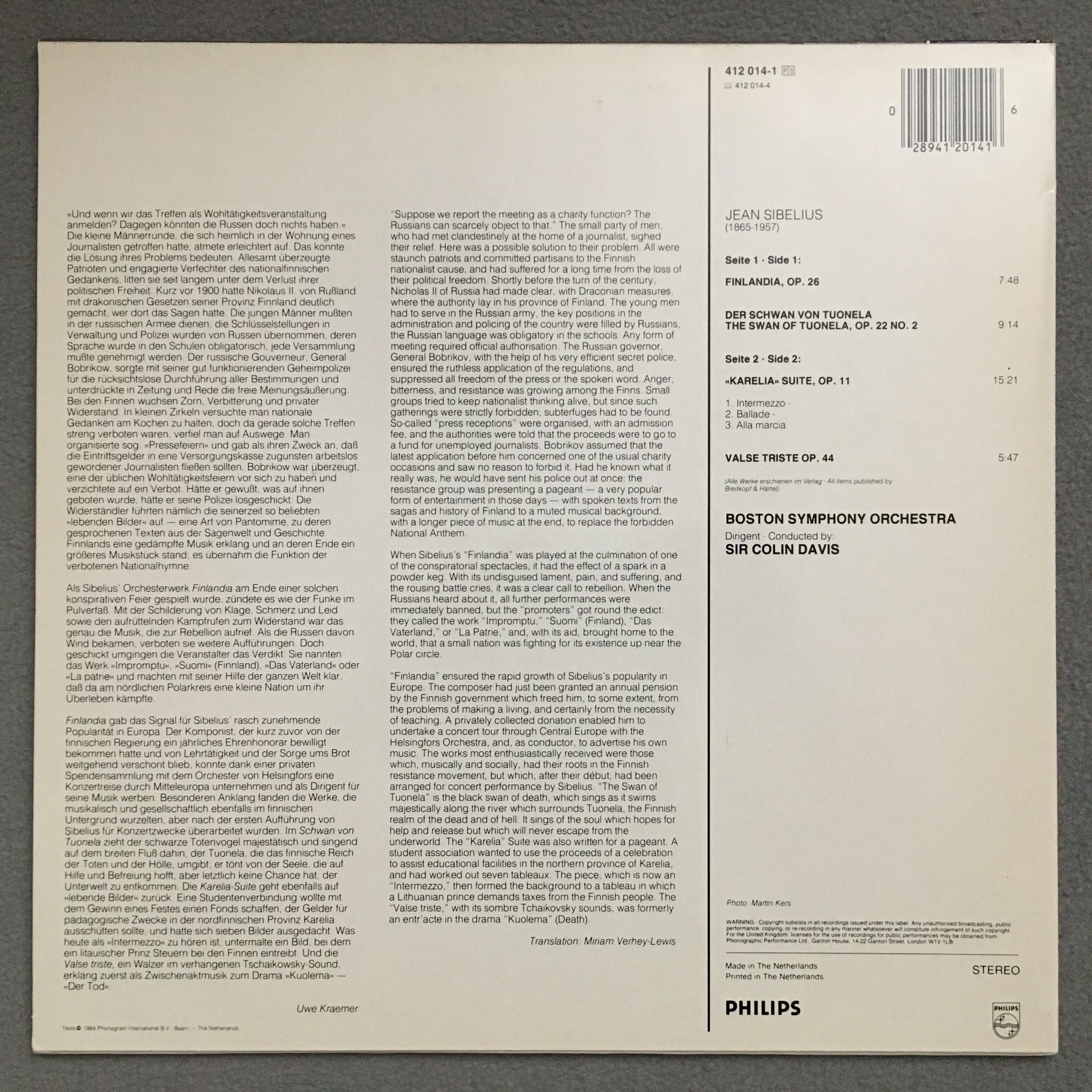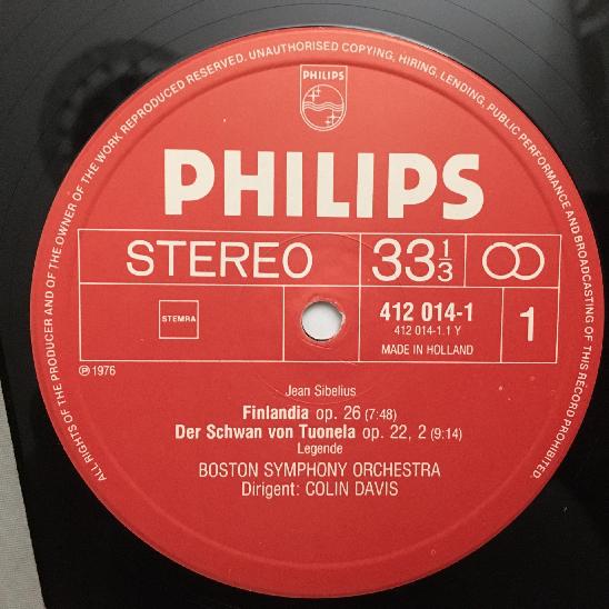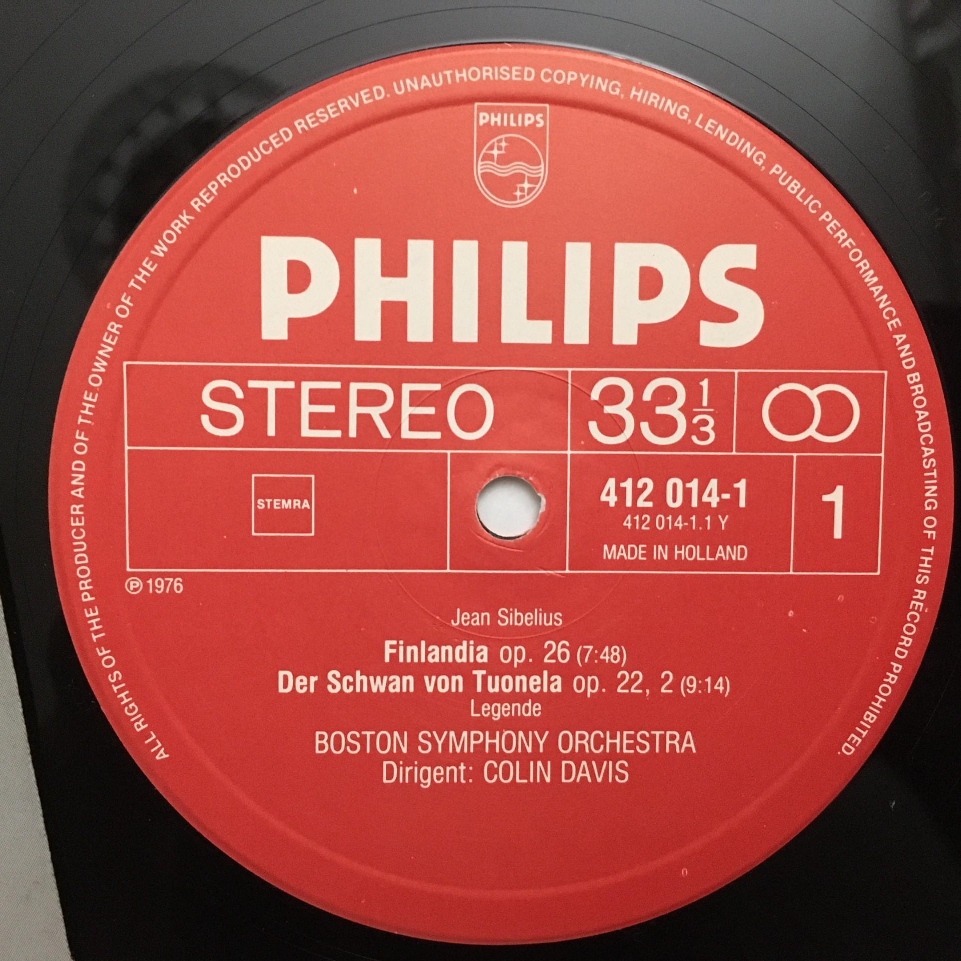 Q186 Sibelius Finlandia Swan of Tuonela Davis Philips 412 014-1 Stereo