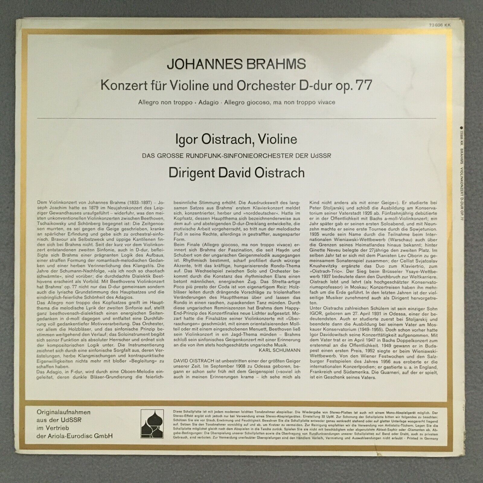 R940 Brahms Violin Concerto I. & D. Oistrakh Eurodisc 73 606 KK