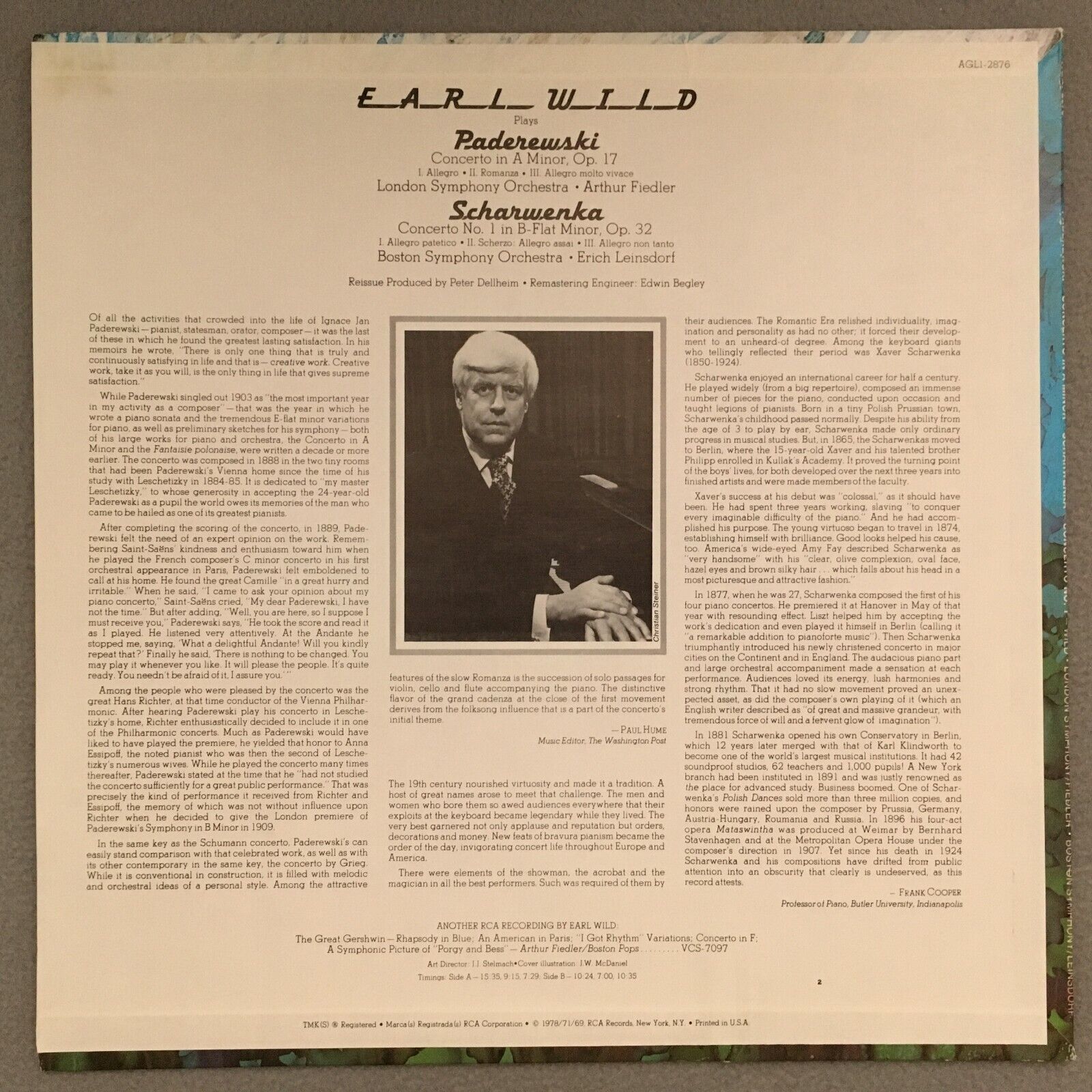 R928 Paderewski Scharwenko Piano Concertos Wild Fiedler RCA AGL1-2876 Stereo