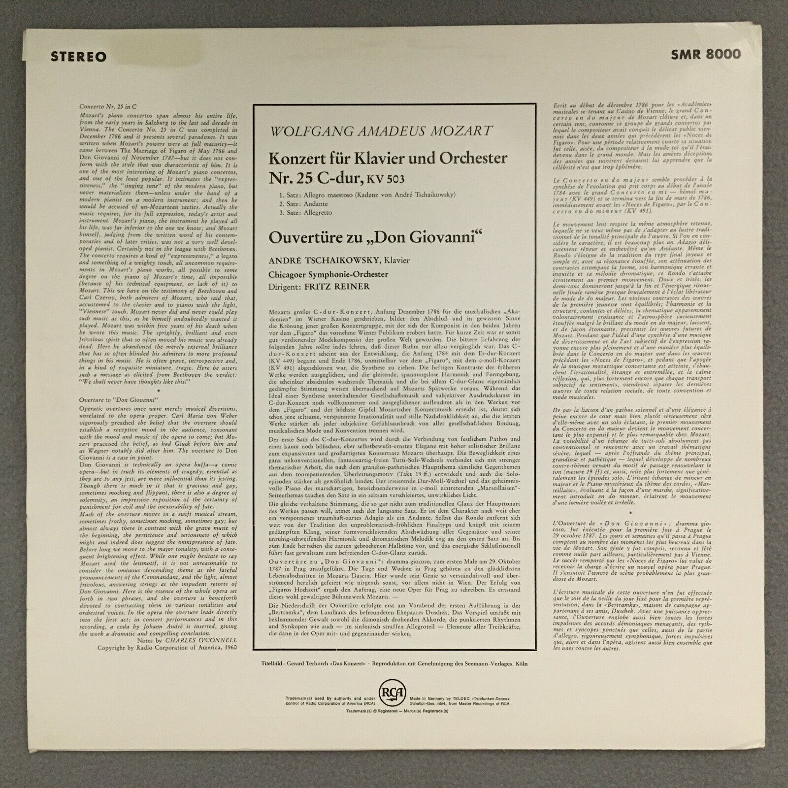 R929 Mozart Piano Concerto Tchaikovsky Reiner RCA Victor SMR 8000 Stereo