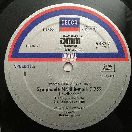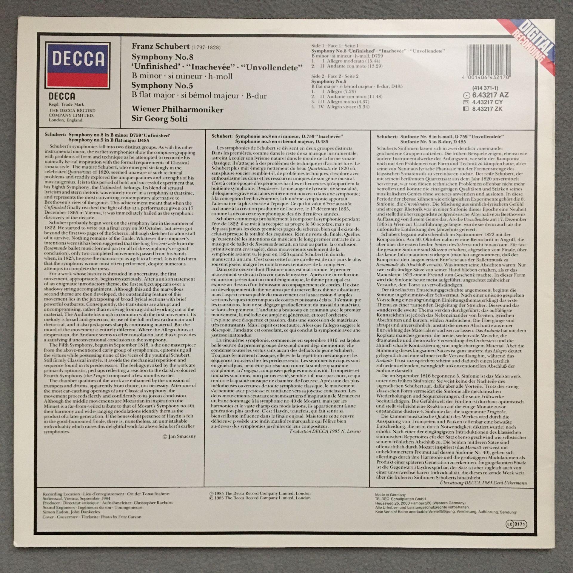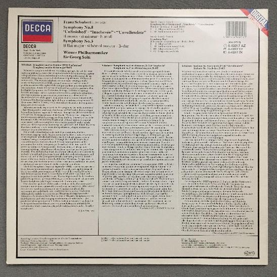 Q191 Schubert Symphonies No.8 & No.5 Solti VPO DECCA 6.43217 AZ Digital Stereo