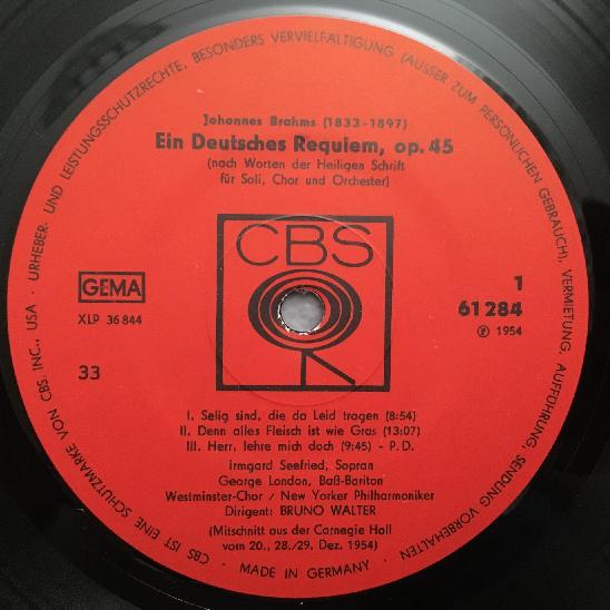 Q200 Brahms German Requiem Op.45 Seefried London Bruno Walter CBS 61 284