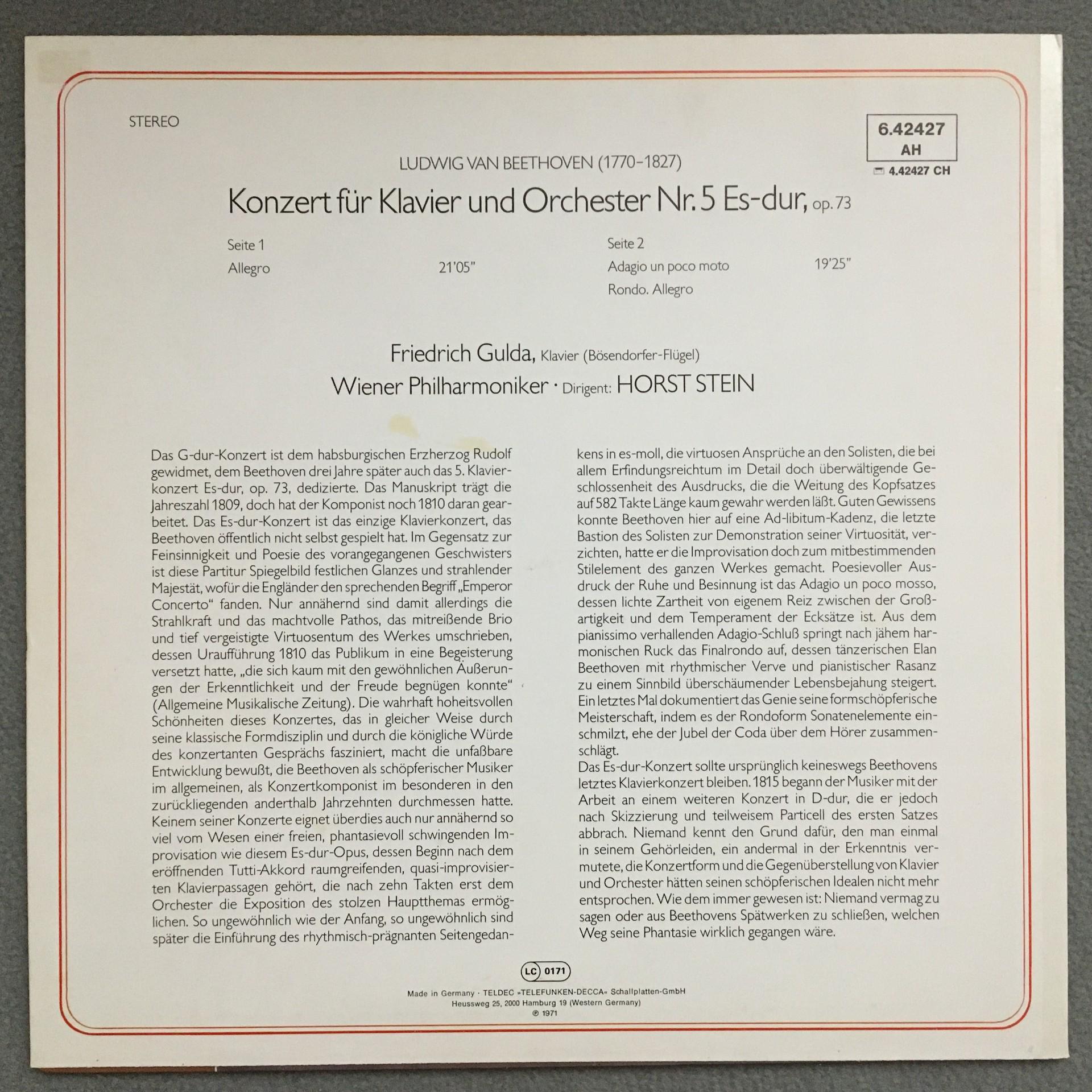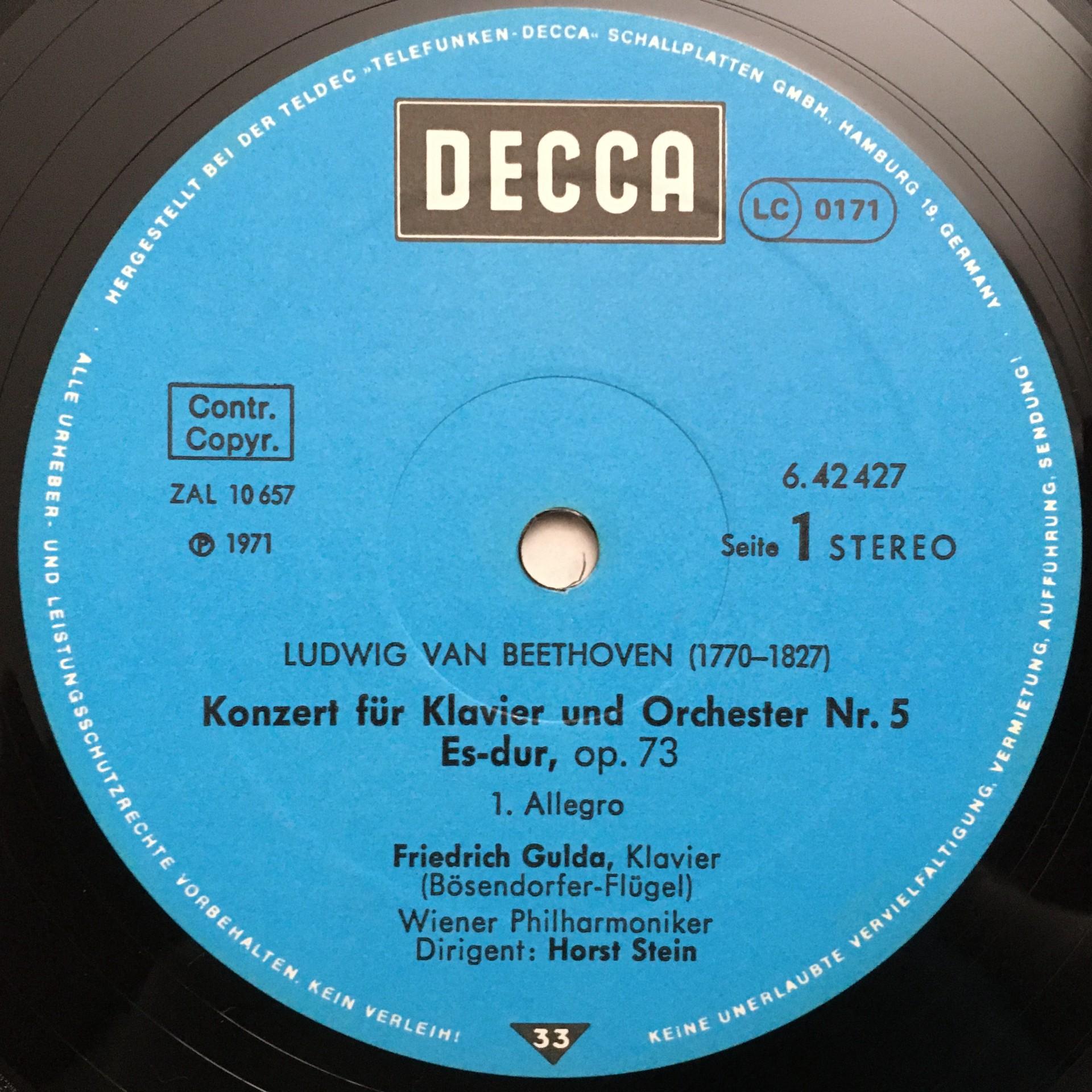 Q201 Beethoven Piano Concerto No.5 Gilda Stein VPO DECCA 6.42427 AH Stereo