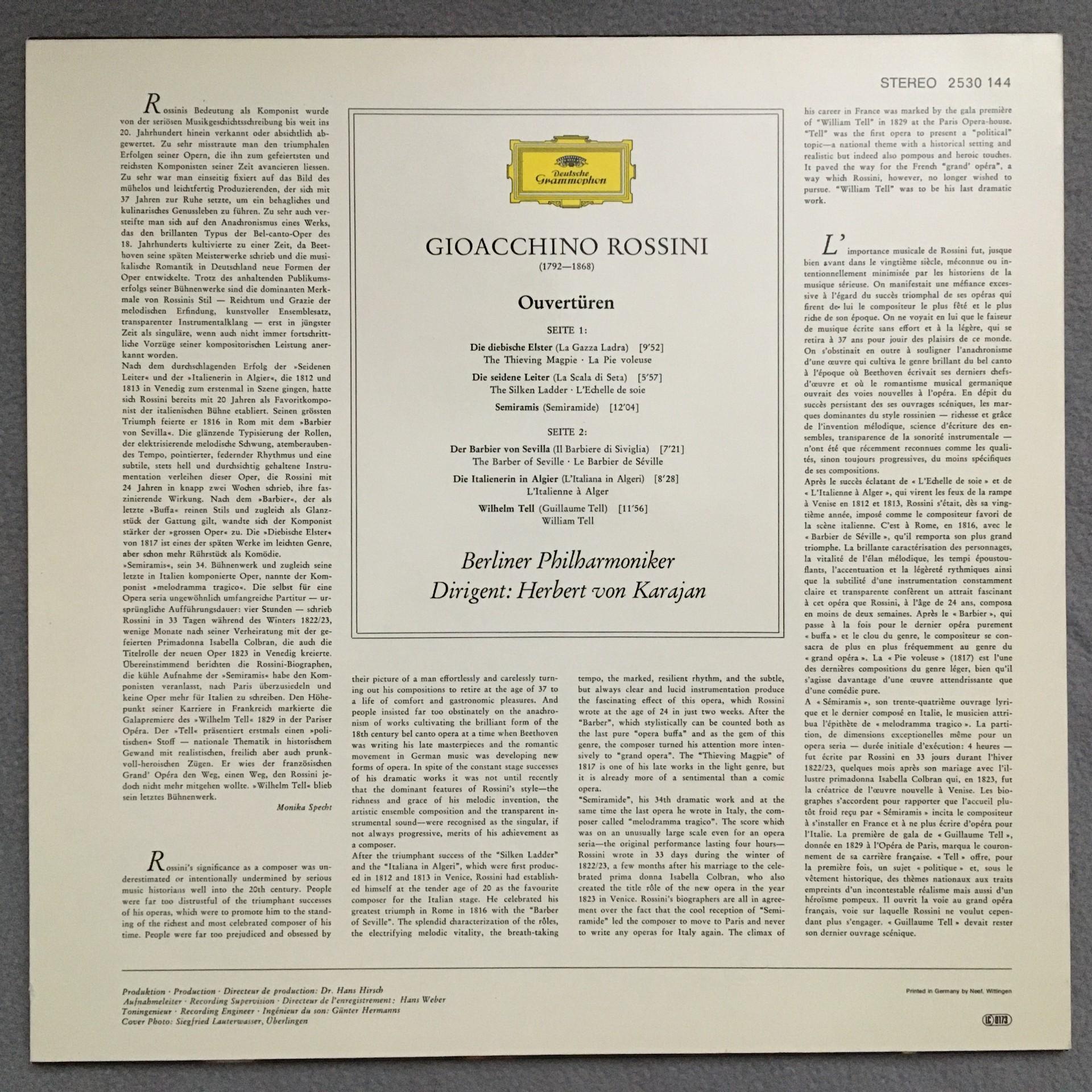 Q210 Rossini Overtures Karajan DGG 2530 144 Stereo