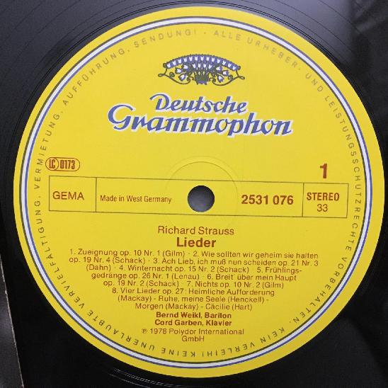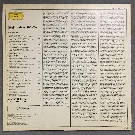 Q214 R. Strauss Songs Weikl Garben Piano DGG 2531 076 Stereo