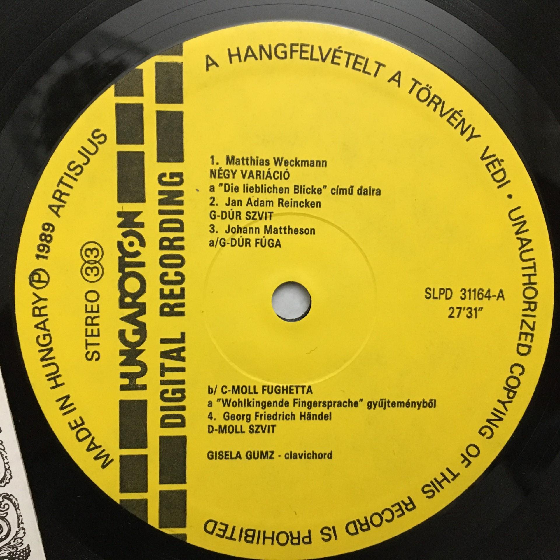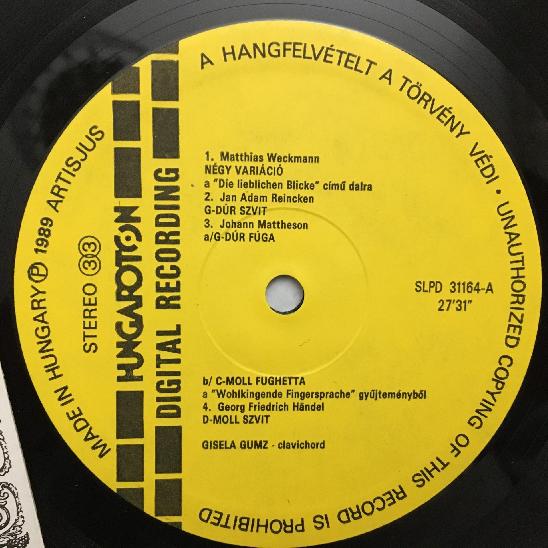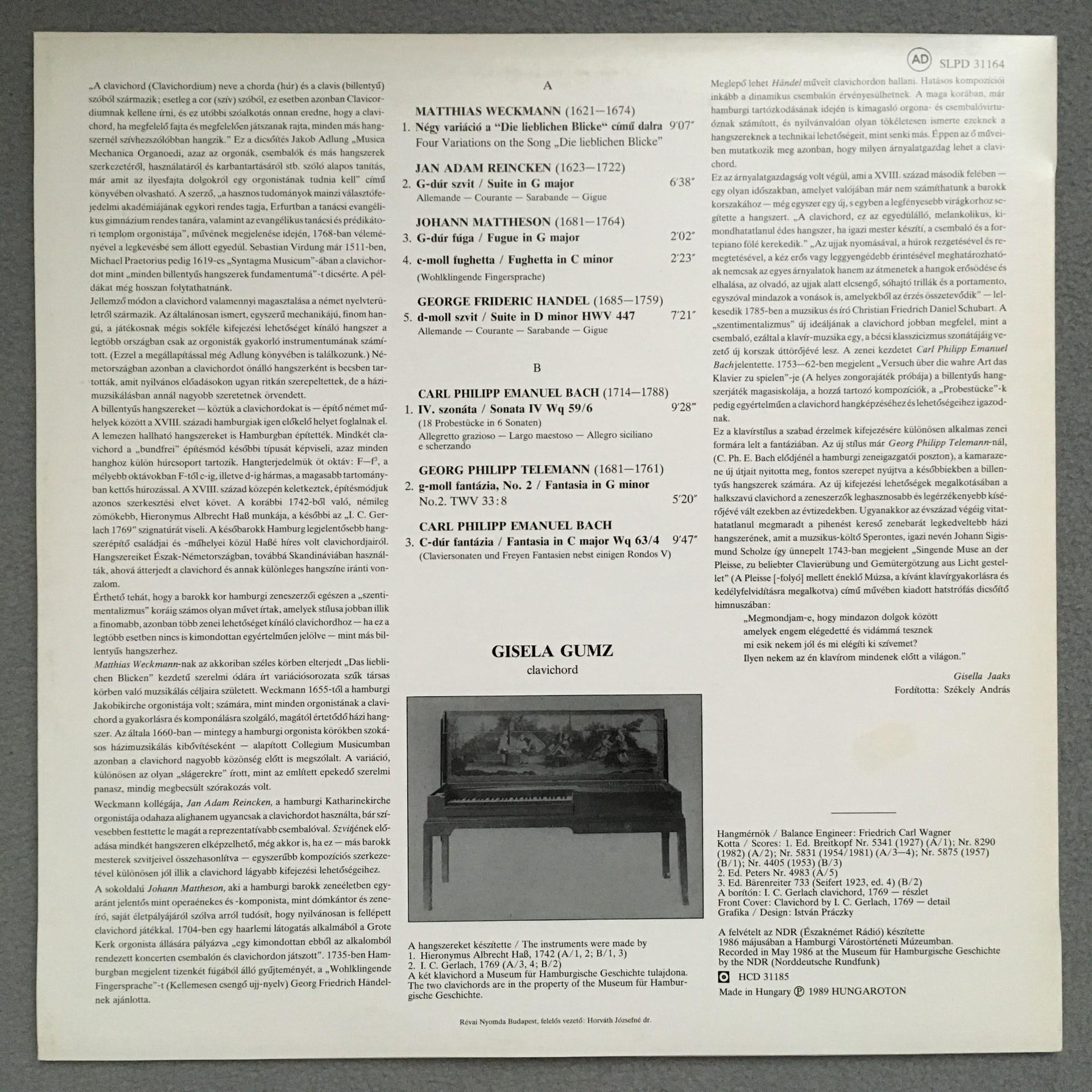 Q215 Clavichord Music Gumz Handel C.P.E. Bach Hungaroton SLPD 31164 Digital St