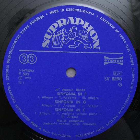 Q216 Benda Symphony Hlavacek Supraphon SV 8290 G Stereo