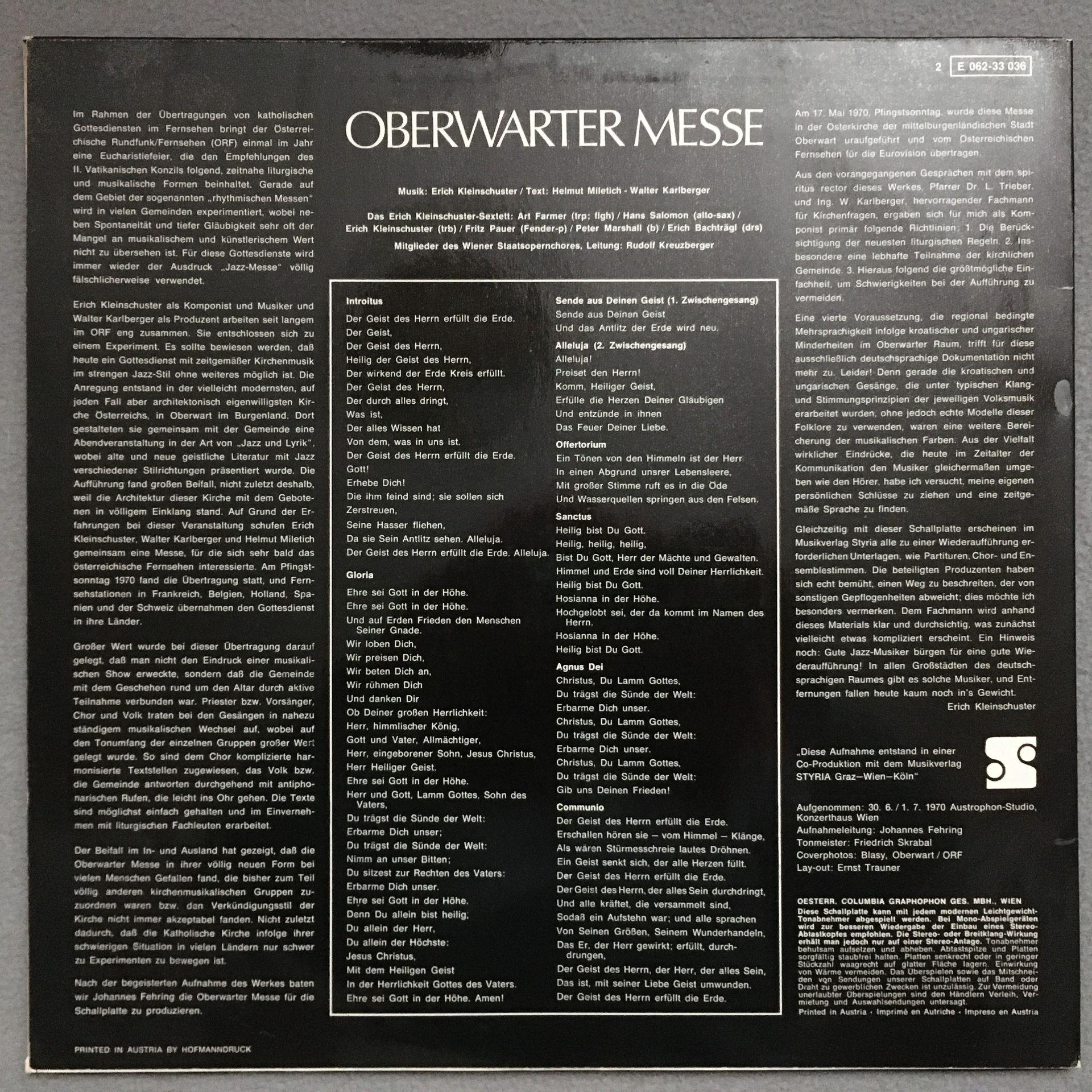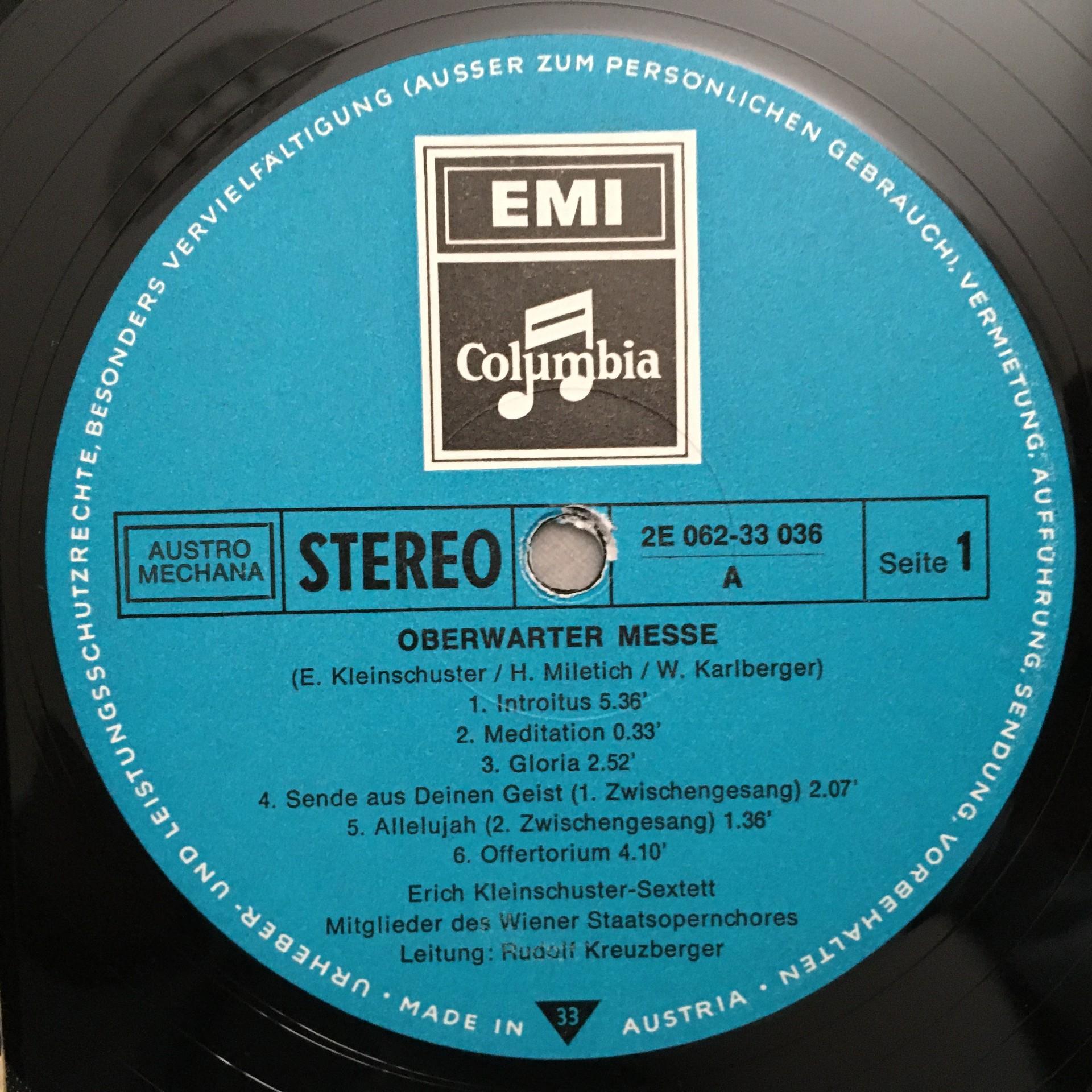 Q219 Oberwarter Mass Kleinschuster Sextet EMI 2 E 062-33 036 Stereo