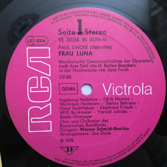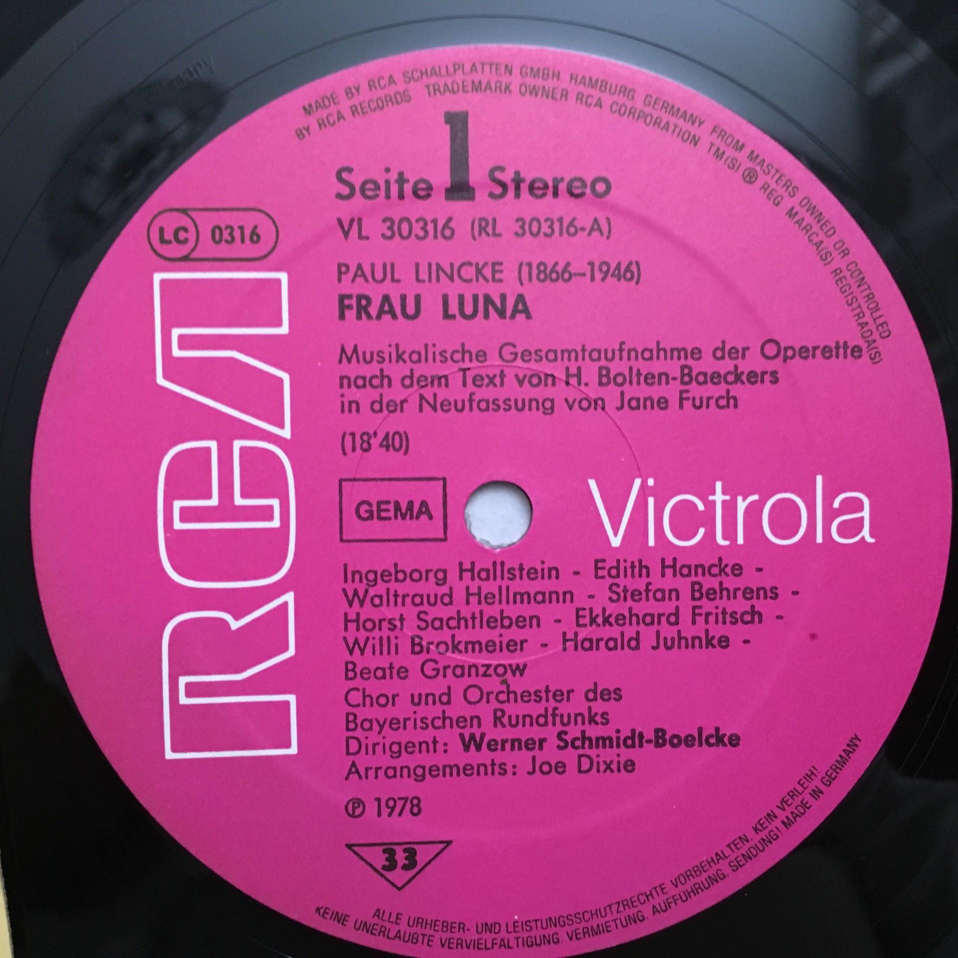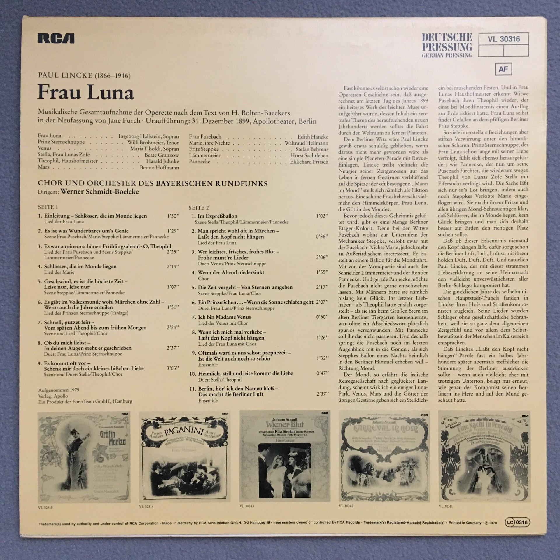 Q225 Lincke Frau Luna Hallstein Schmidt-Boelcke RCA VL 30316 Stereo