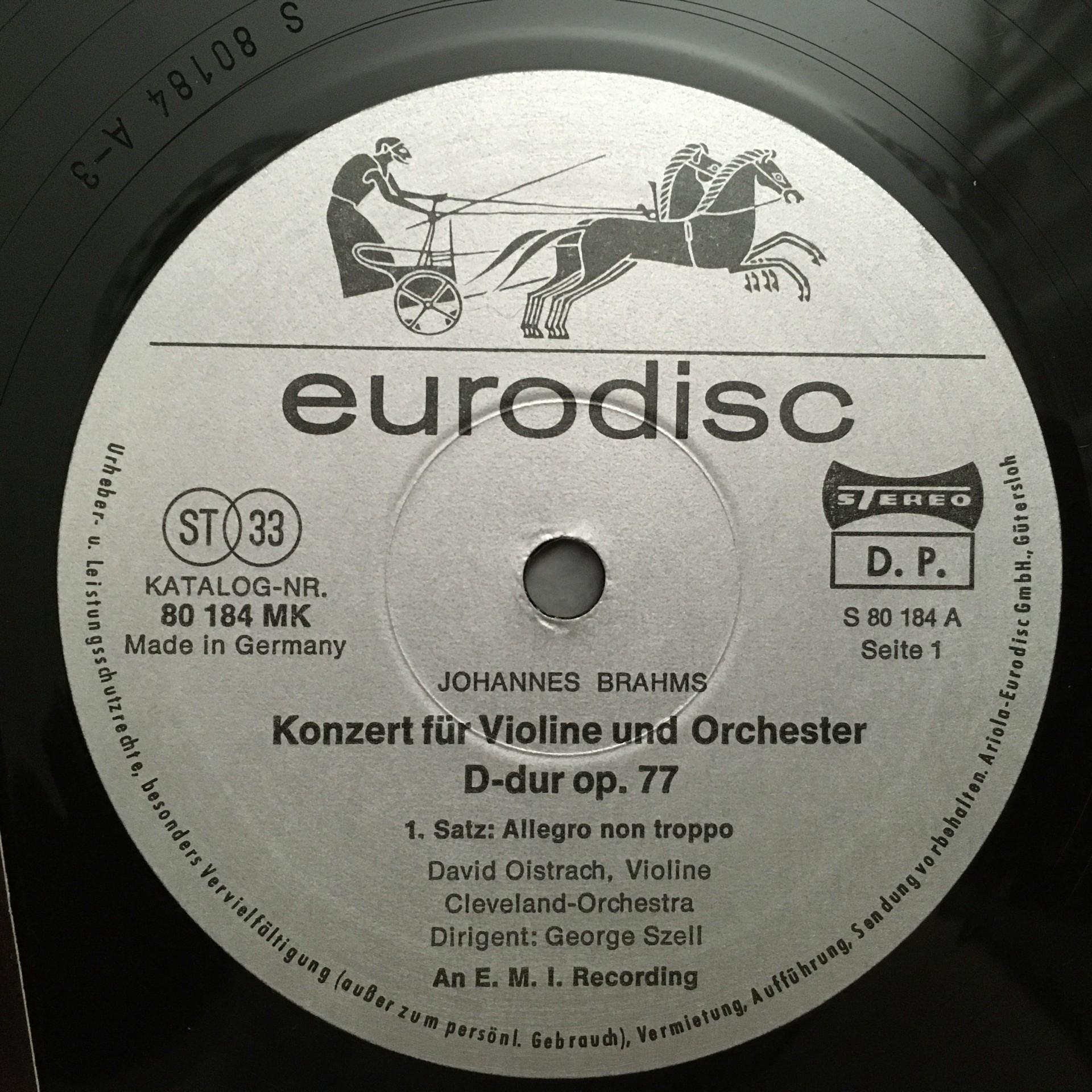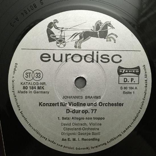 Q238 Brahms Violin Concerto Oistrakh Szell Eurodisc 80 184 KK Stereo Grey ED1