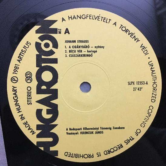 Q239 J. Strauss Overtures Waltzes Polkas Ferencsik Hungaroton SLPX 12353 Stereo
