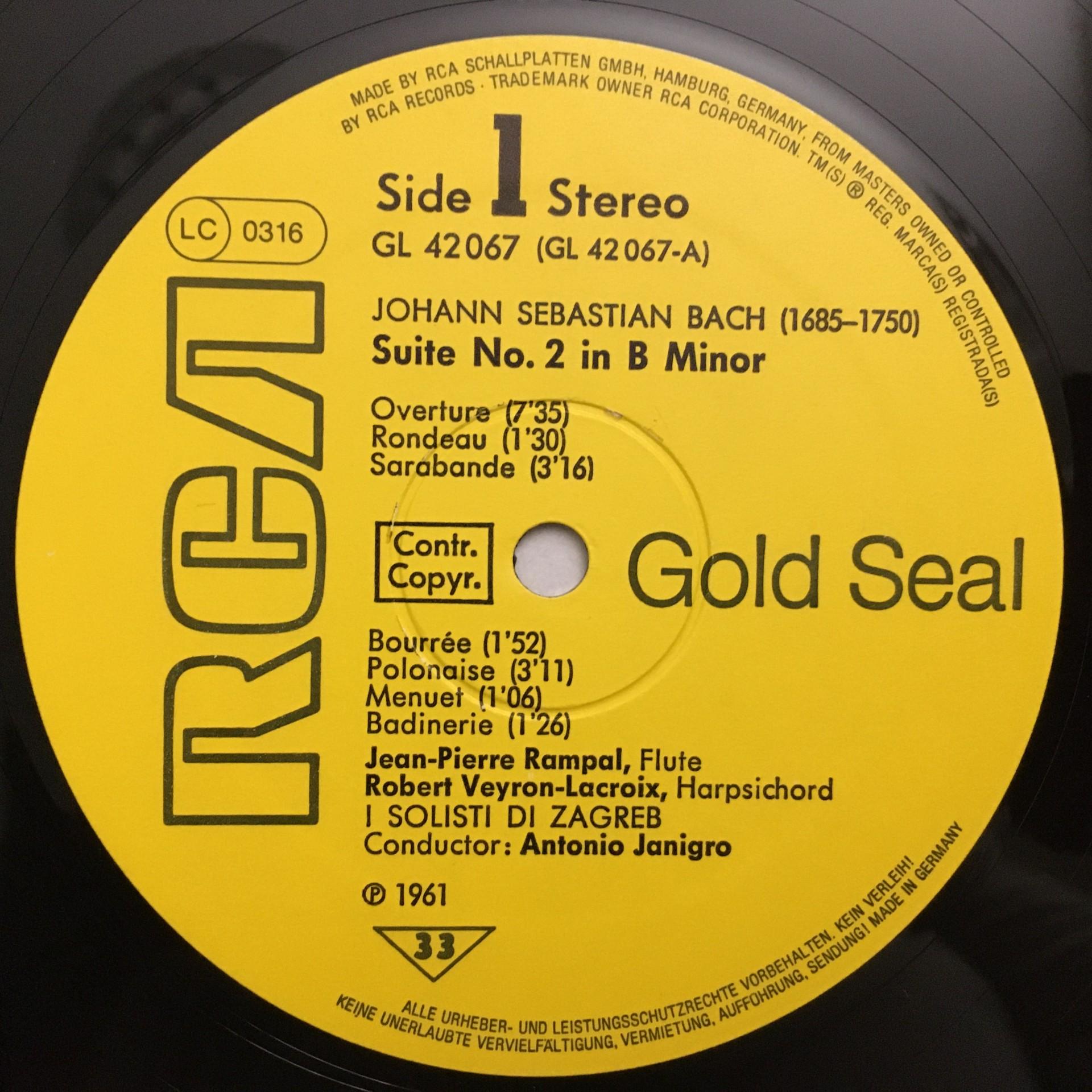 Q243 Bach Suite Brandenburg Concerto Rampal Janigro RCA GL 42067 Stereo