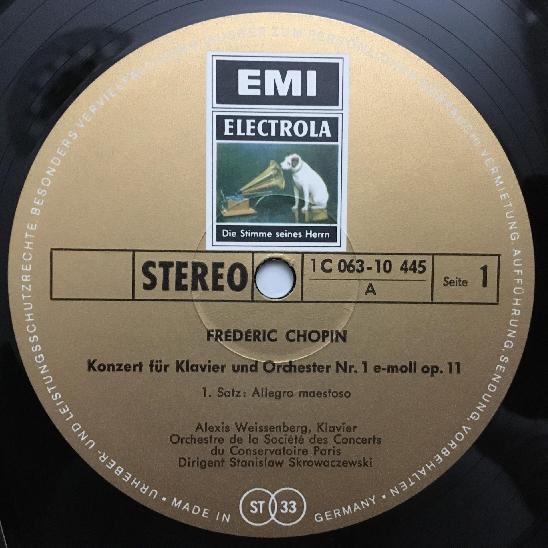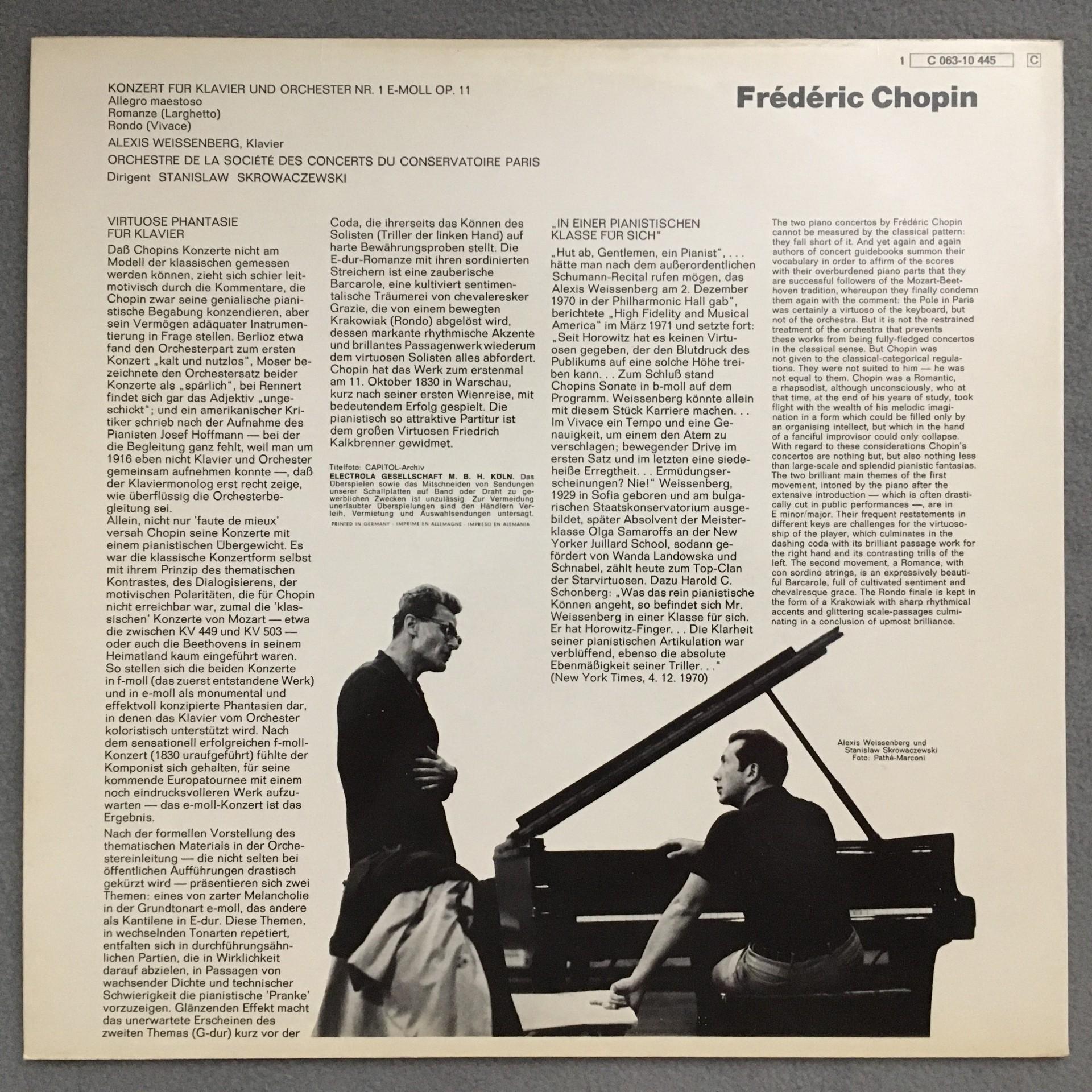 Q249 Chopin Piano Concerto Weissenberg Skrowaczewski EMI 1 C 063-10 445 Stereo