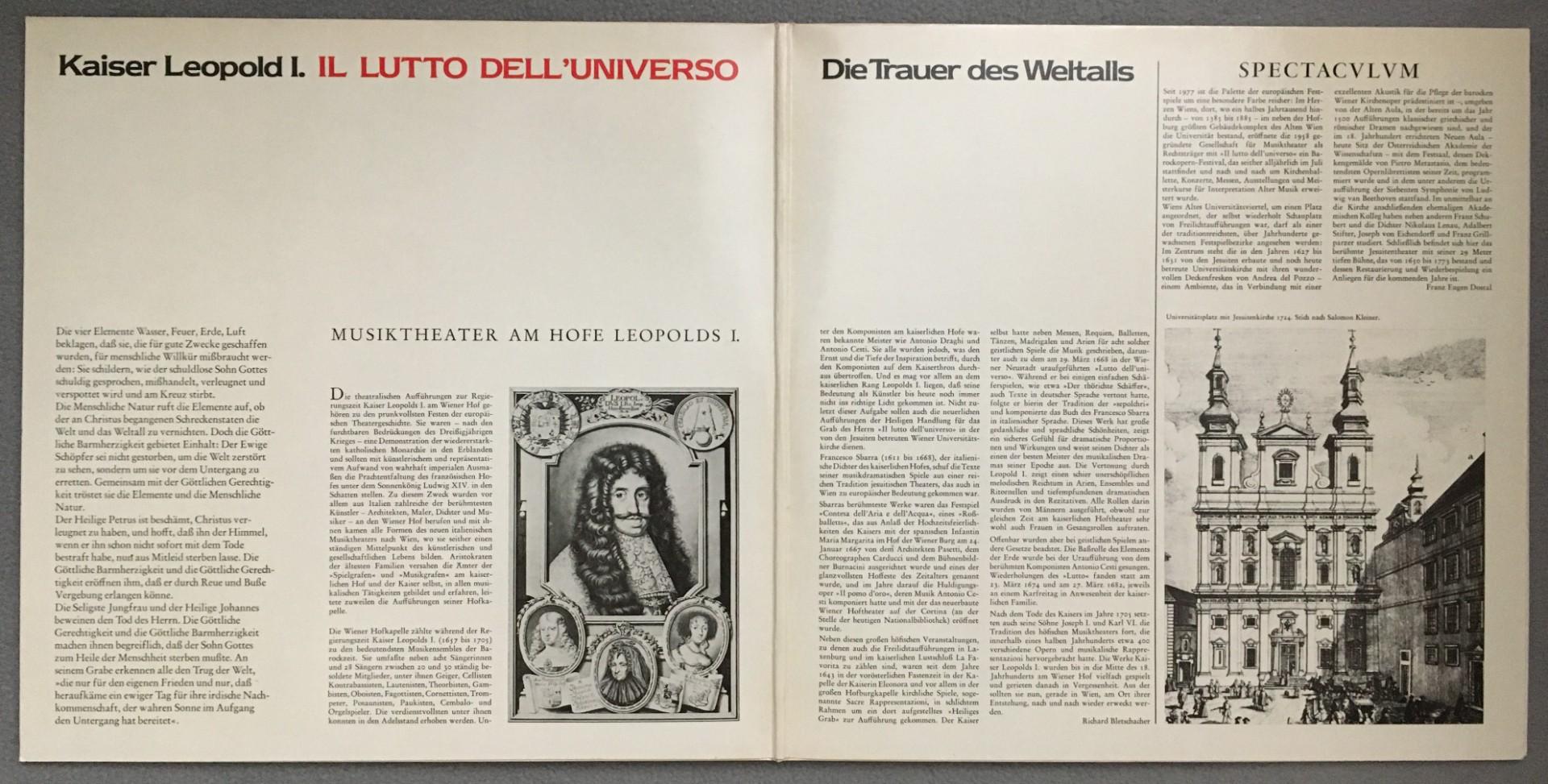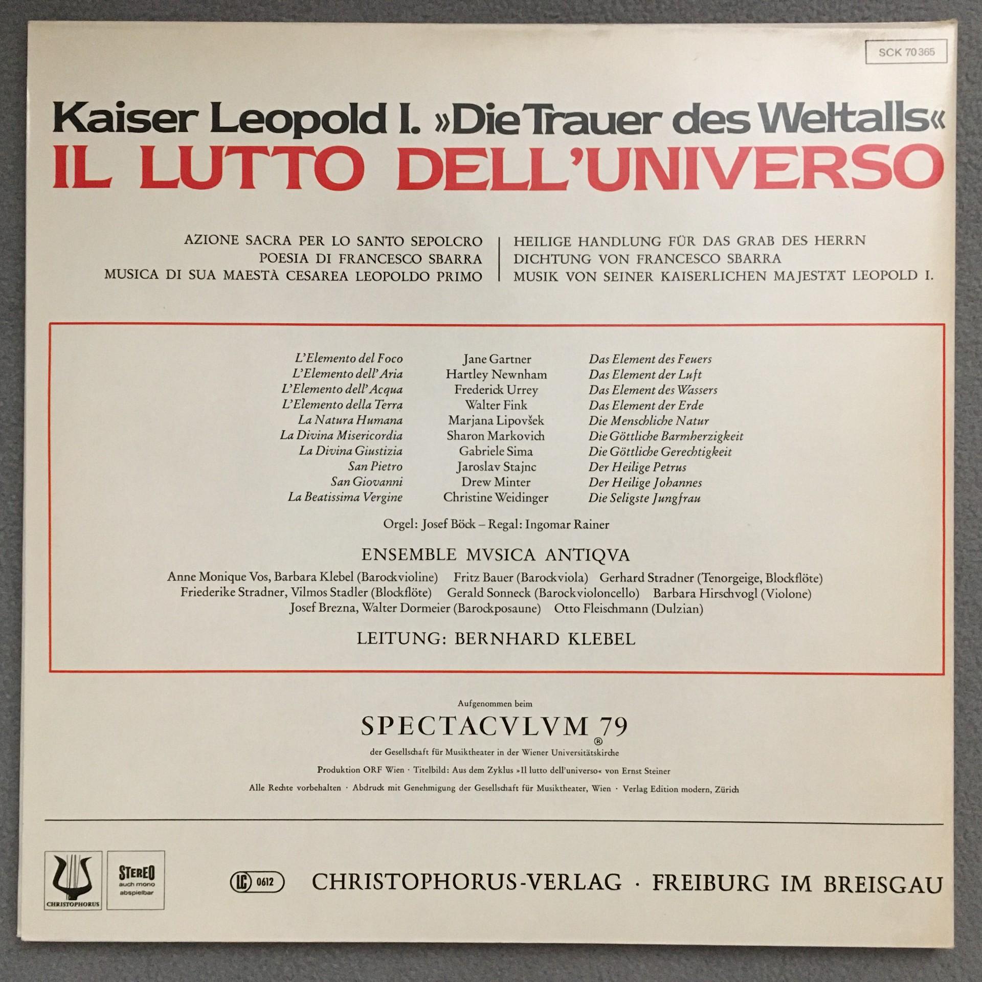 Q251 Kaiser Leopold I. Il Lutto Dell´Universo 2LP Christophorus SCK 70 365 St
