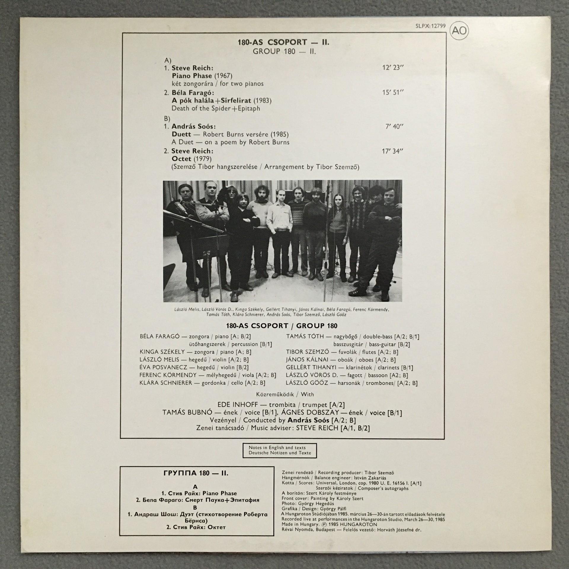 Q256 Group 180 II Reich Farago Soos Hungaroton SLPX 12799 Stereo