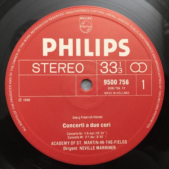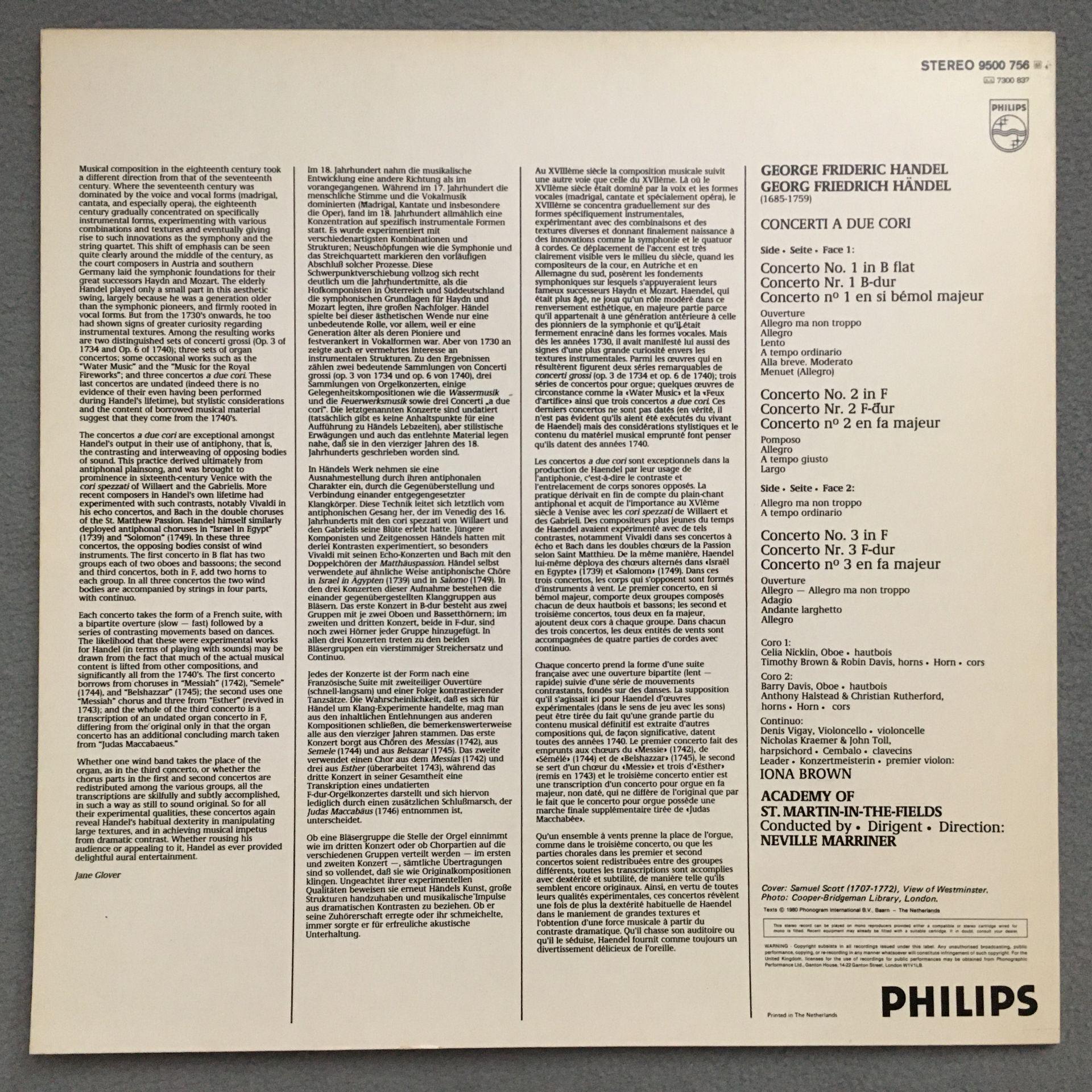 Q273 Handel Concertos No.1,2 & 3 Brown Marriner Philips 9500 756 Stereo