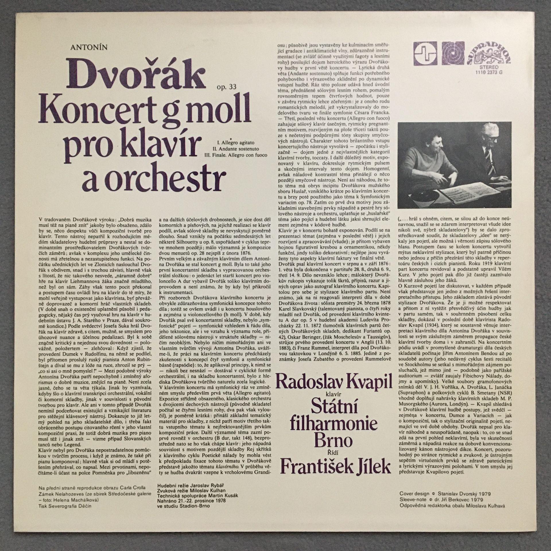 Q276 Dvorak Piano Concerto Kvapil Jilek Supraphon 1110 2373 G Stereo