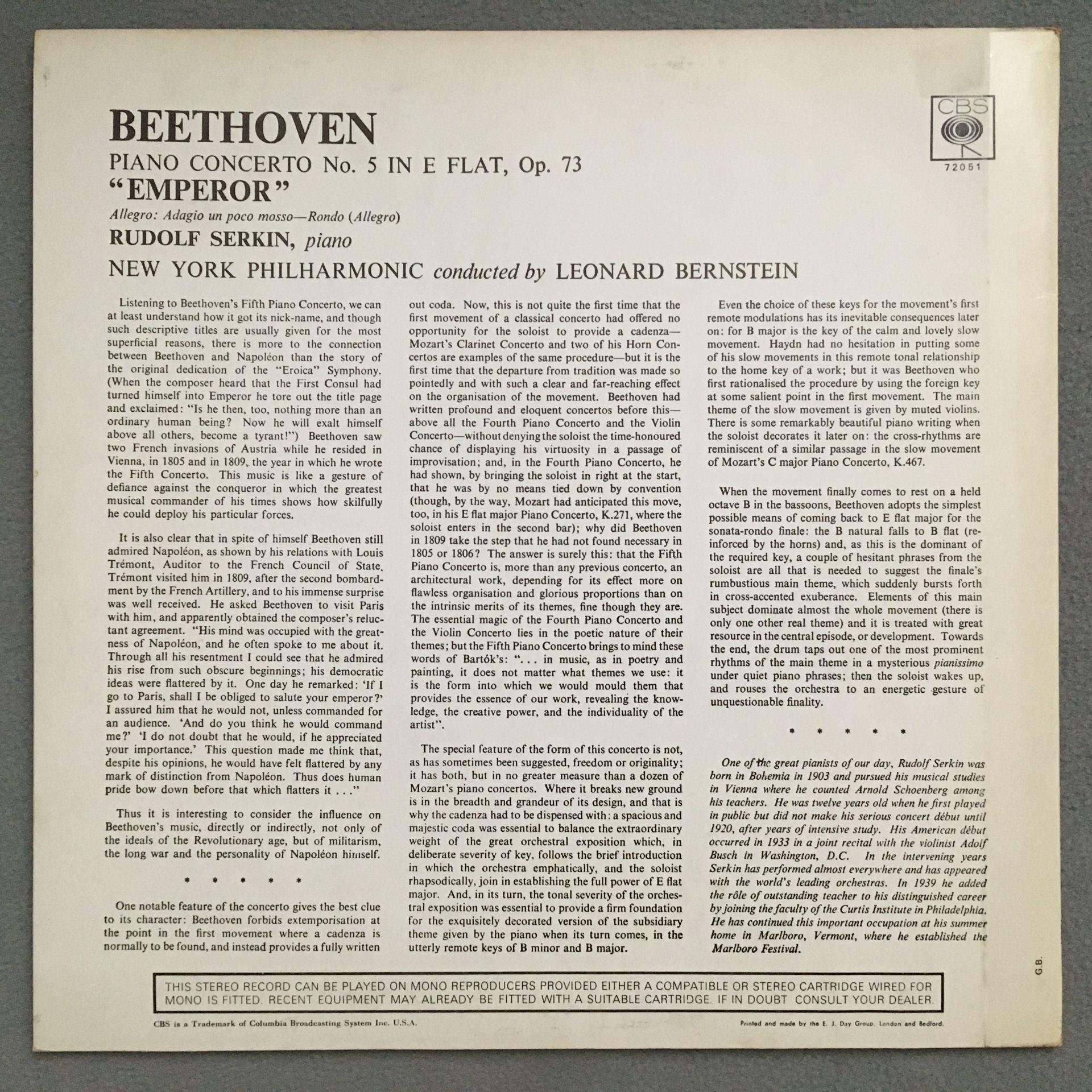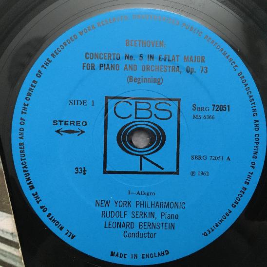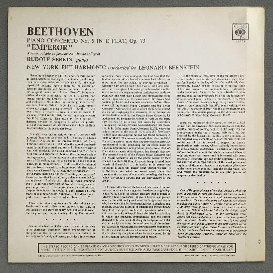 Q281 Beethoven Piano Concerto No.5 Serkin Bernstein CBS 72051 Stereo
