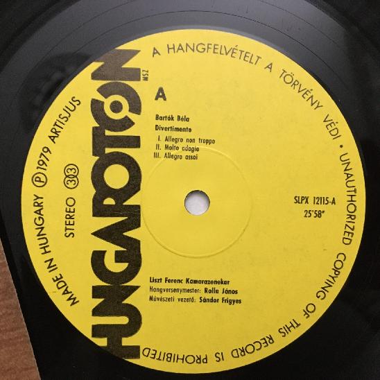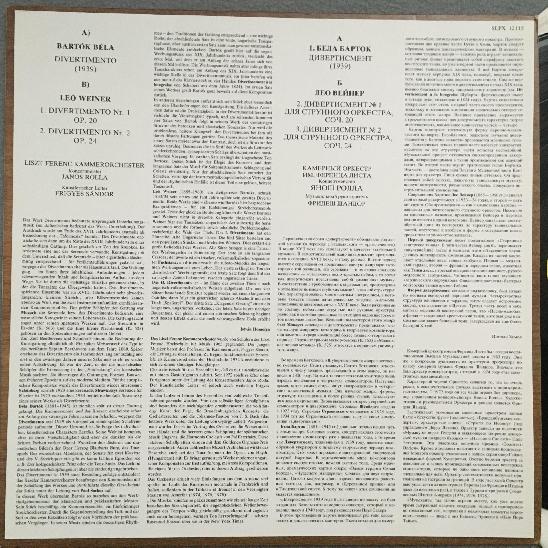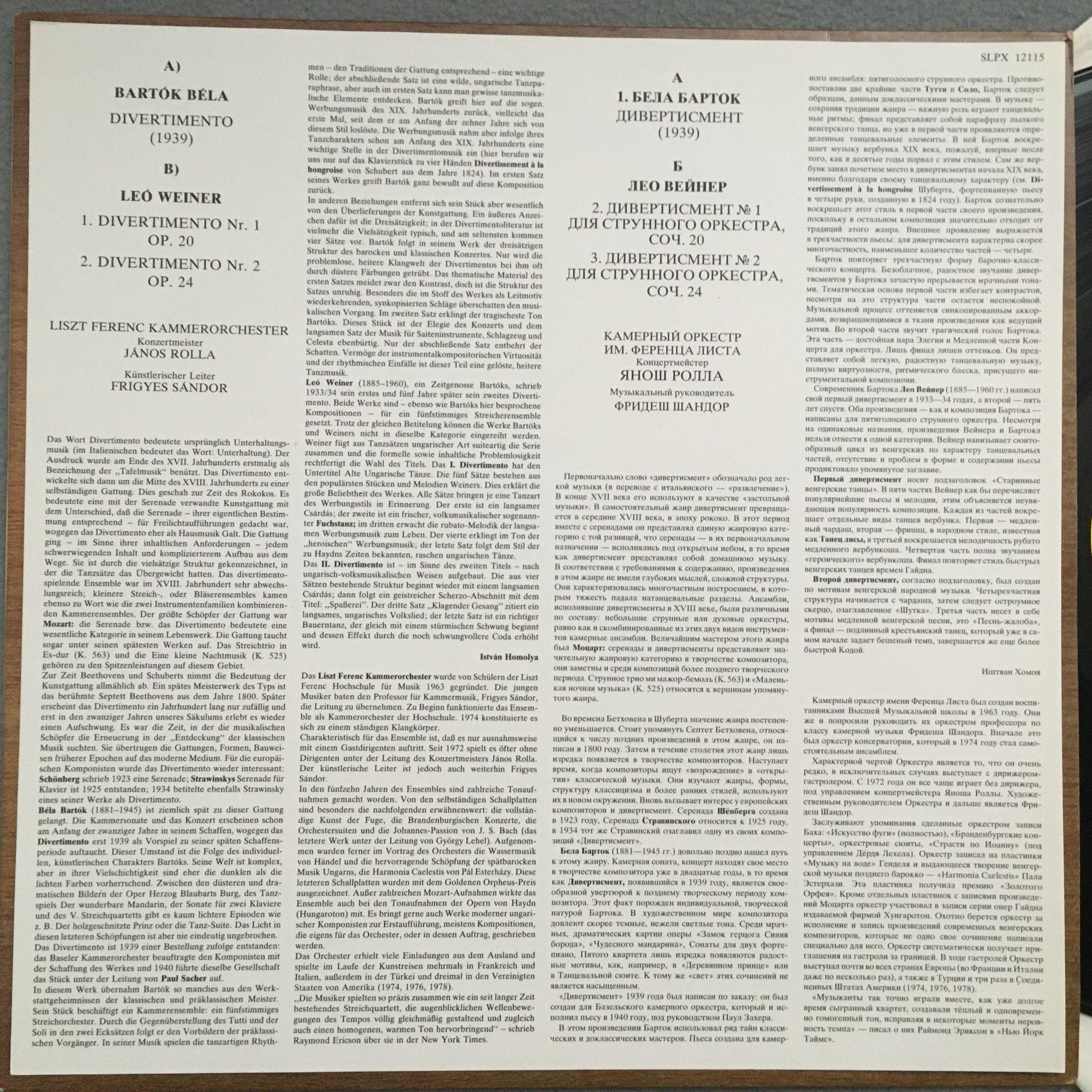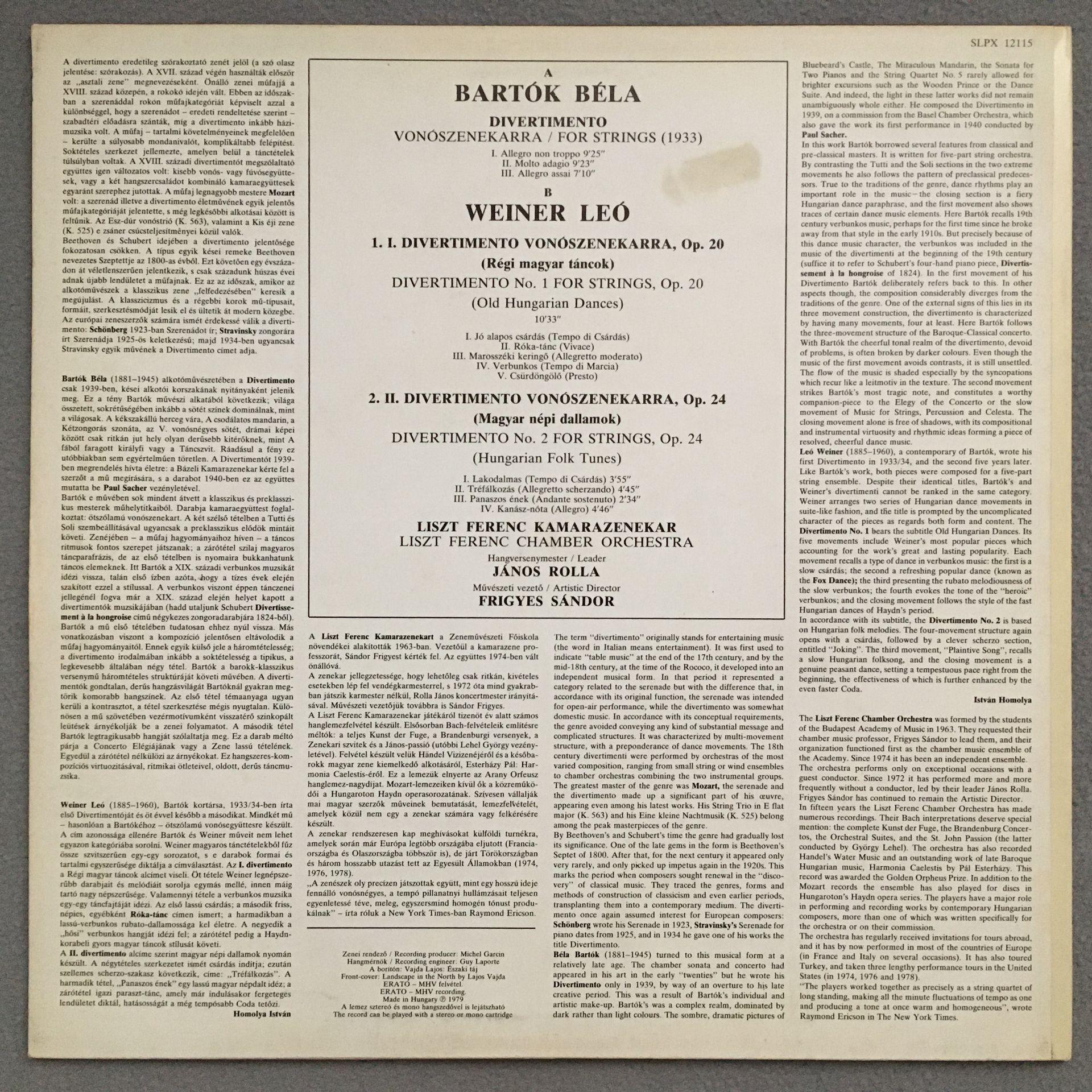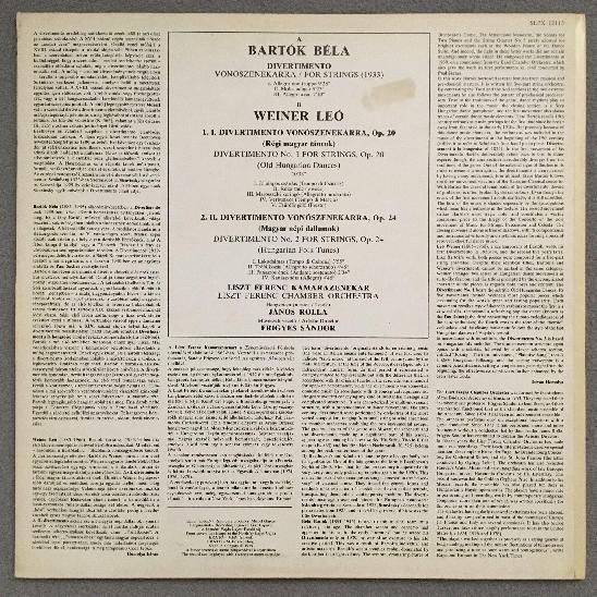 Q283 Bartok Weiner Divertimentos Rolla Sandor Hungaroton SLPX 12115 Stereo