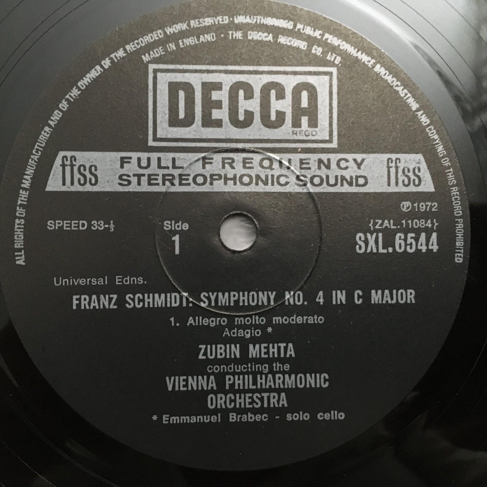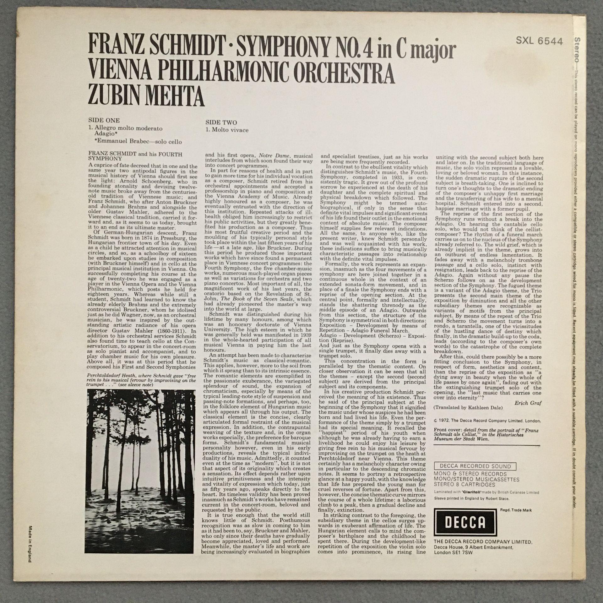 Q284 Schmidt Symphony No.4 Mehta DECCA SXL 6544 Stereo
