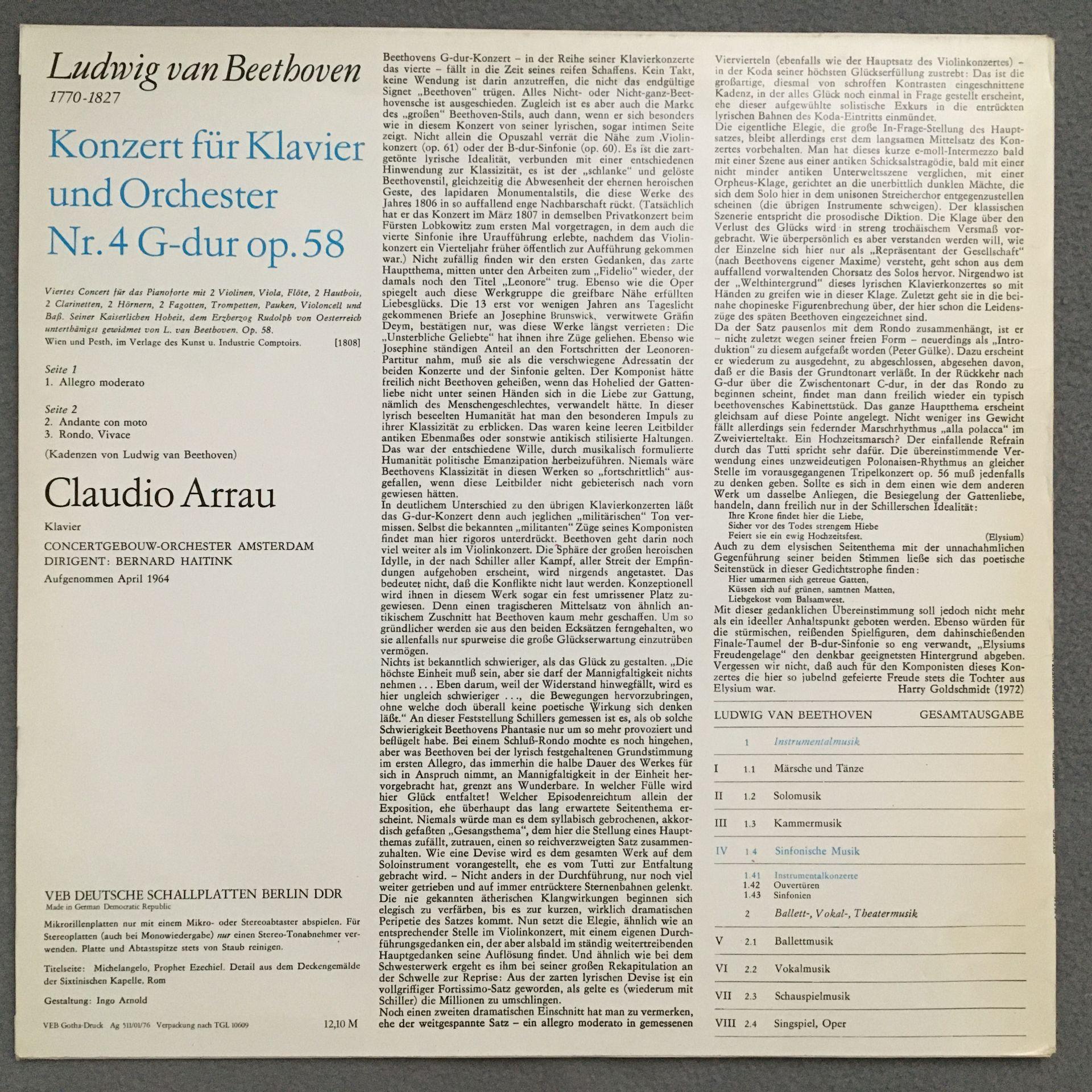 Q286 Beethoven Piano Concerto No.4 Arrau Haitink Eterna 8 25 545 Stereo