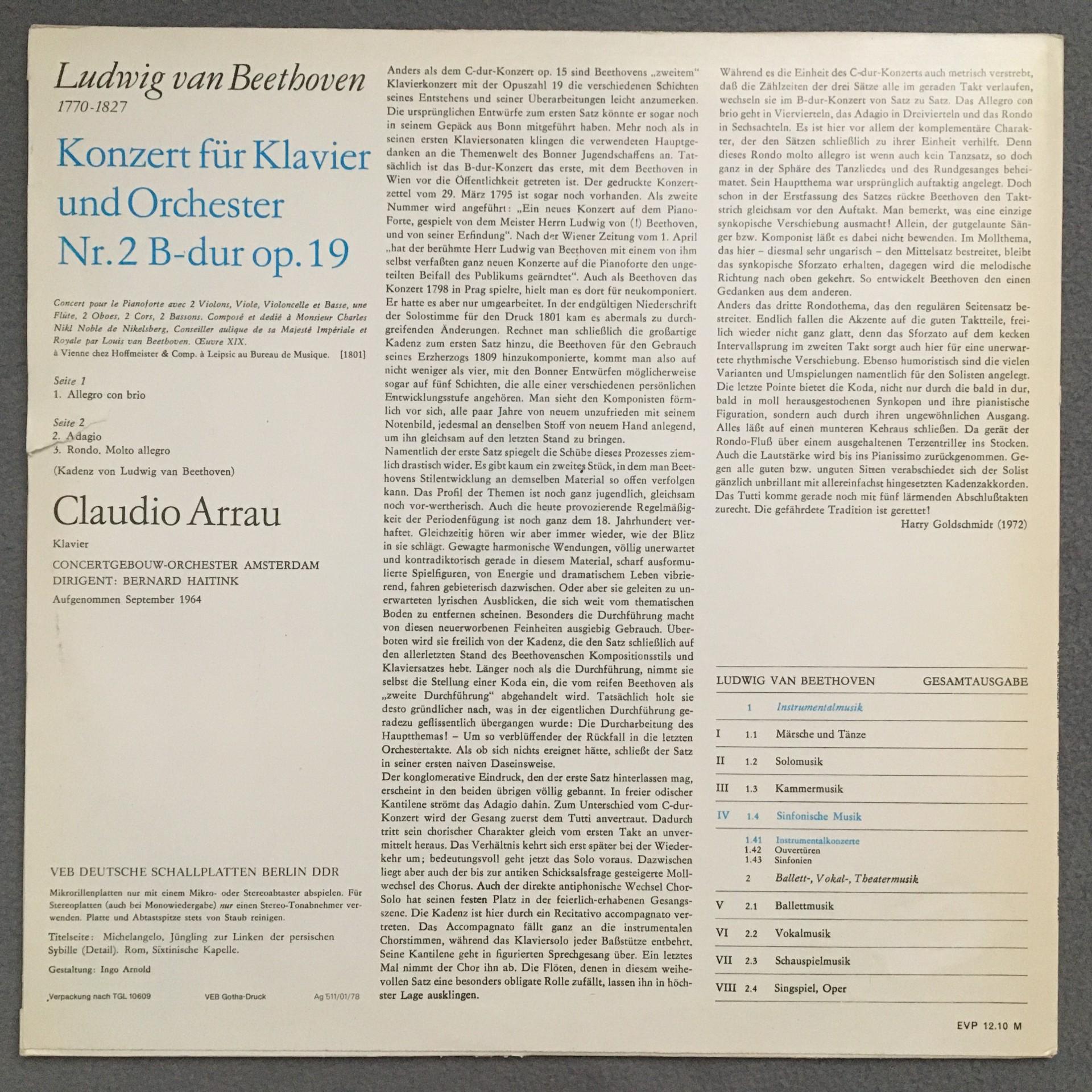 Q288 Beethoven Piano Concerto No.2 Arrau Haitink Eterna 8 25 543 Stereo