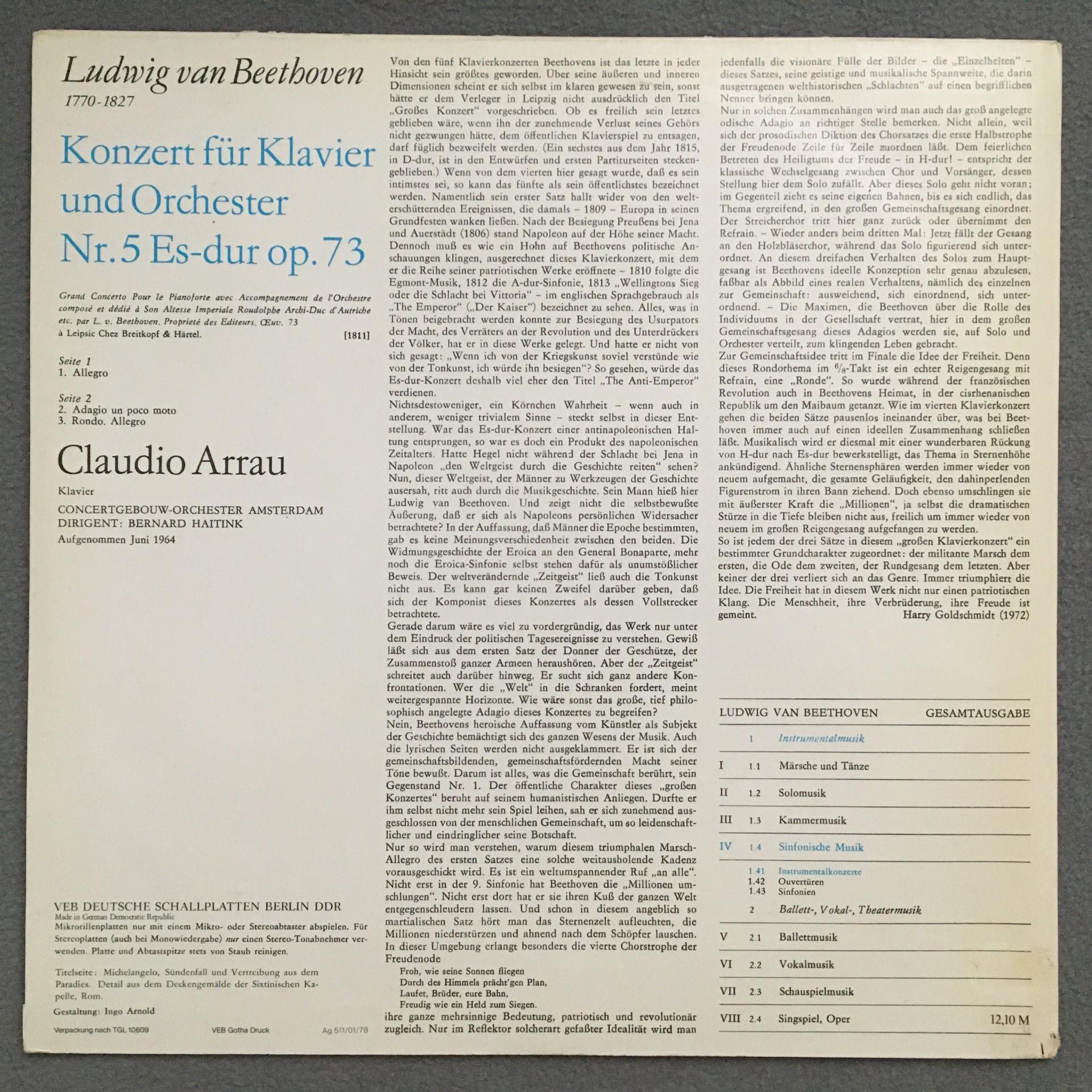 Q291 Beethoven Piano Concerto No.5 Arrau Haitink Eterna 8 25 546 Stereo