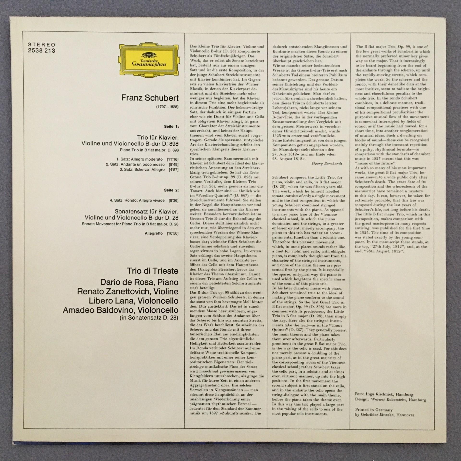 Q294 Schubert Piano Trio Sonata Trio di Trieste DGG 2538 213 Stereo
